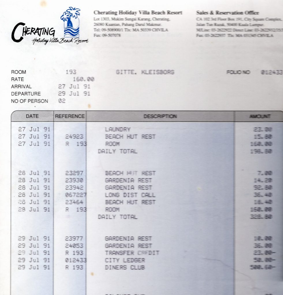 Vores tur til Cherating på Østkysten gik fint, men der skete ikke de store ting. Vejret kunne have været bedre, idet vi havde en del skyer – men det regnede da ikke, så det kunne have været værre.