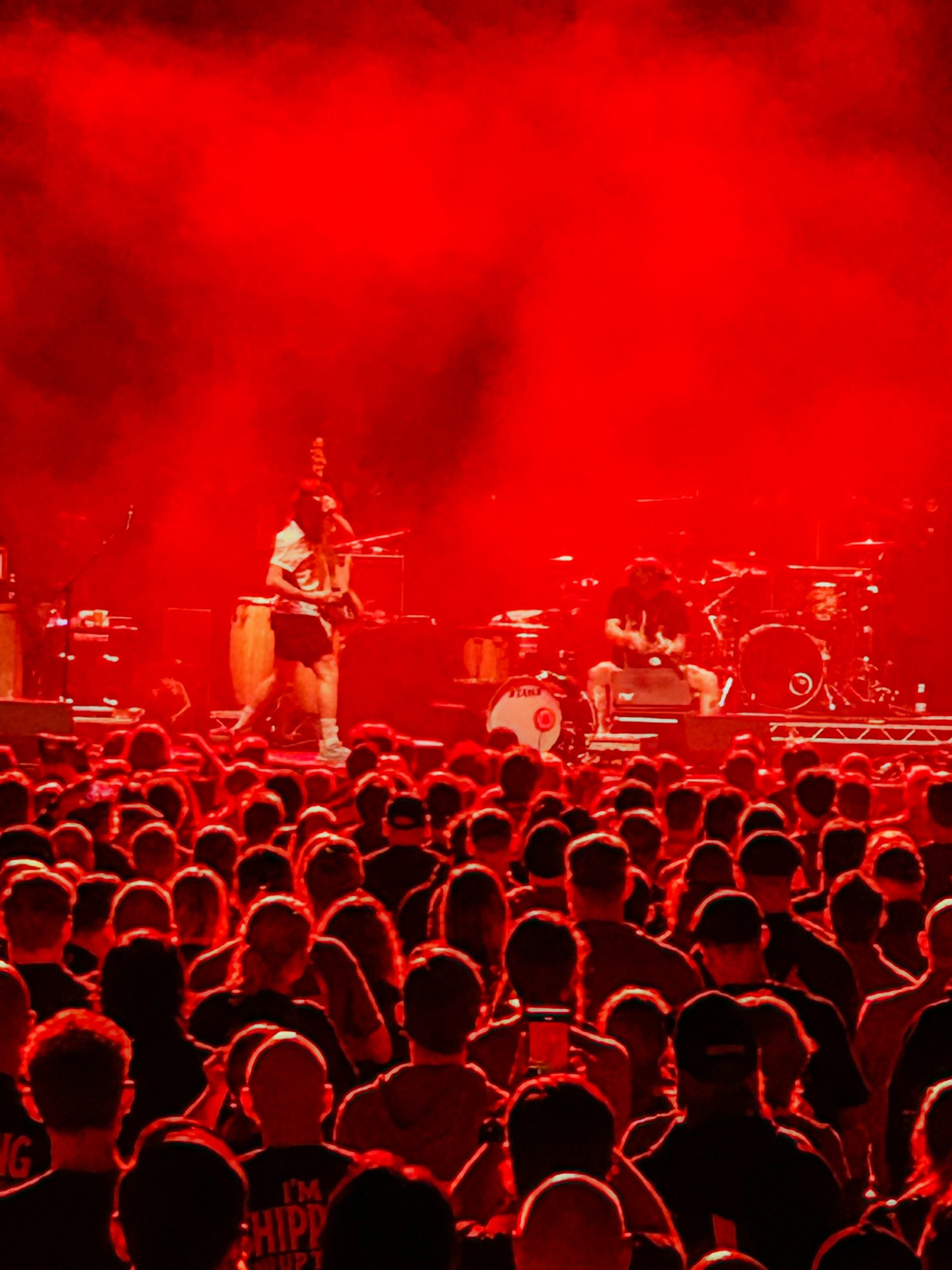Lyden kunne være bedre. Musikken lød af og til noget rodet, men der var da fuld gang i publikum.