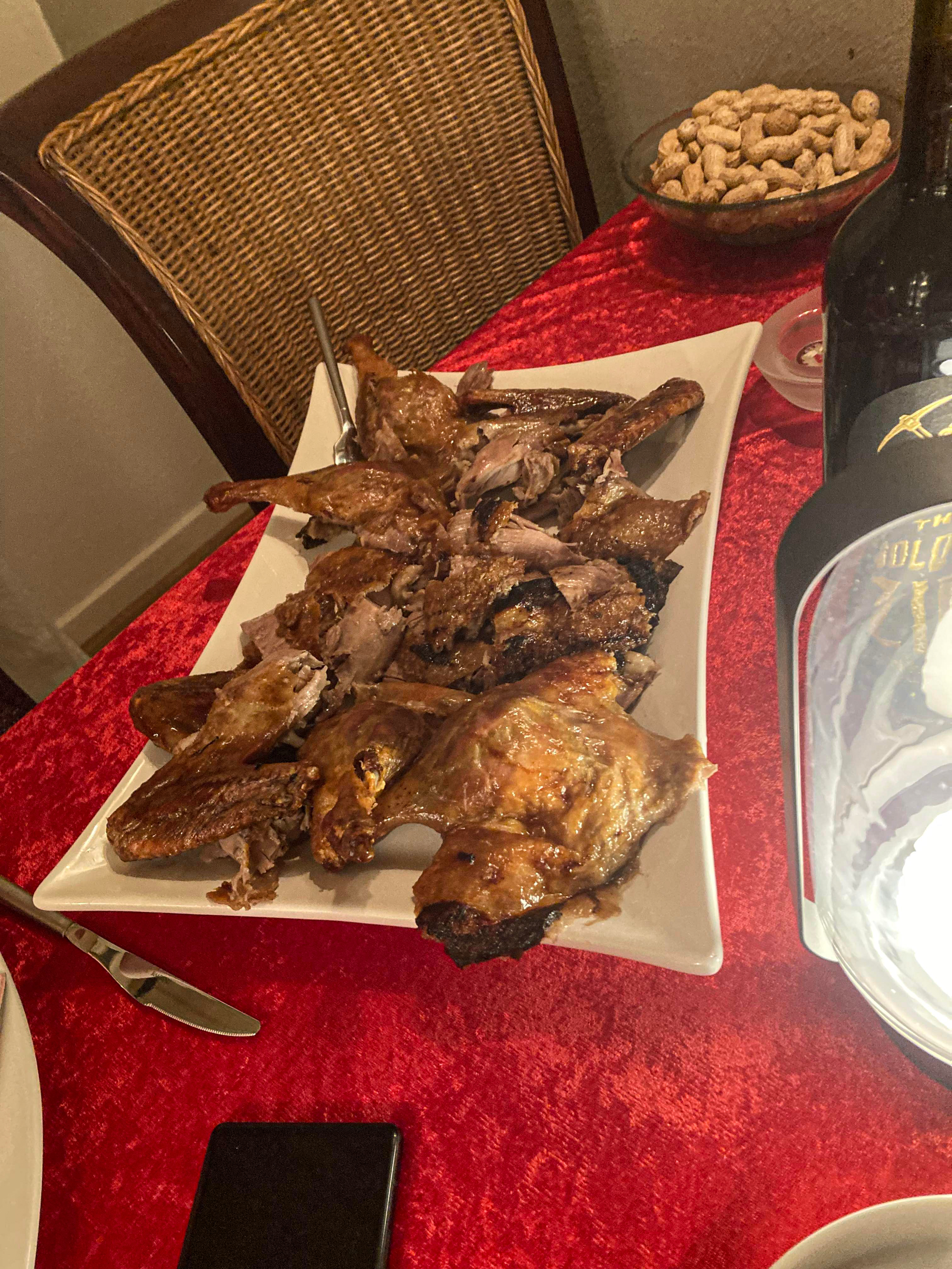 Lis har det jo med at fotografere sin egen tallerken, og da hun kun spiser vinger (i skarp konkurence med Kirsten) og ikke bruger nævneværdigt med sovs, så synes jeg nu ikke, at disse billeder yder maden den fortjente anerkendelse 🙂