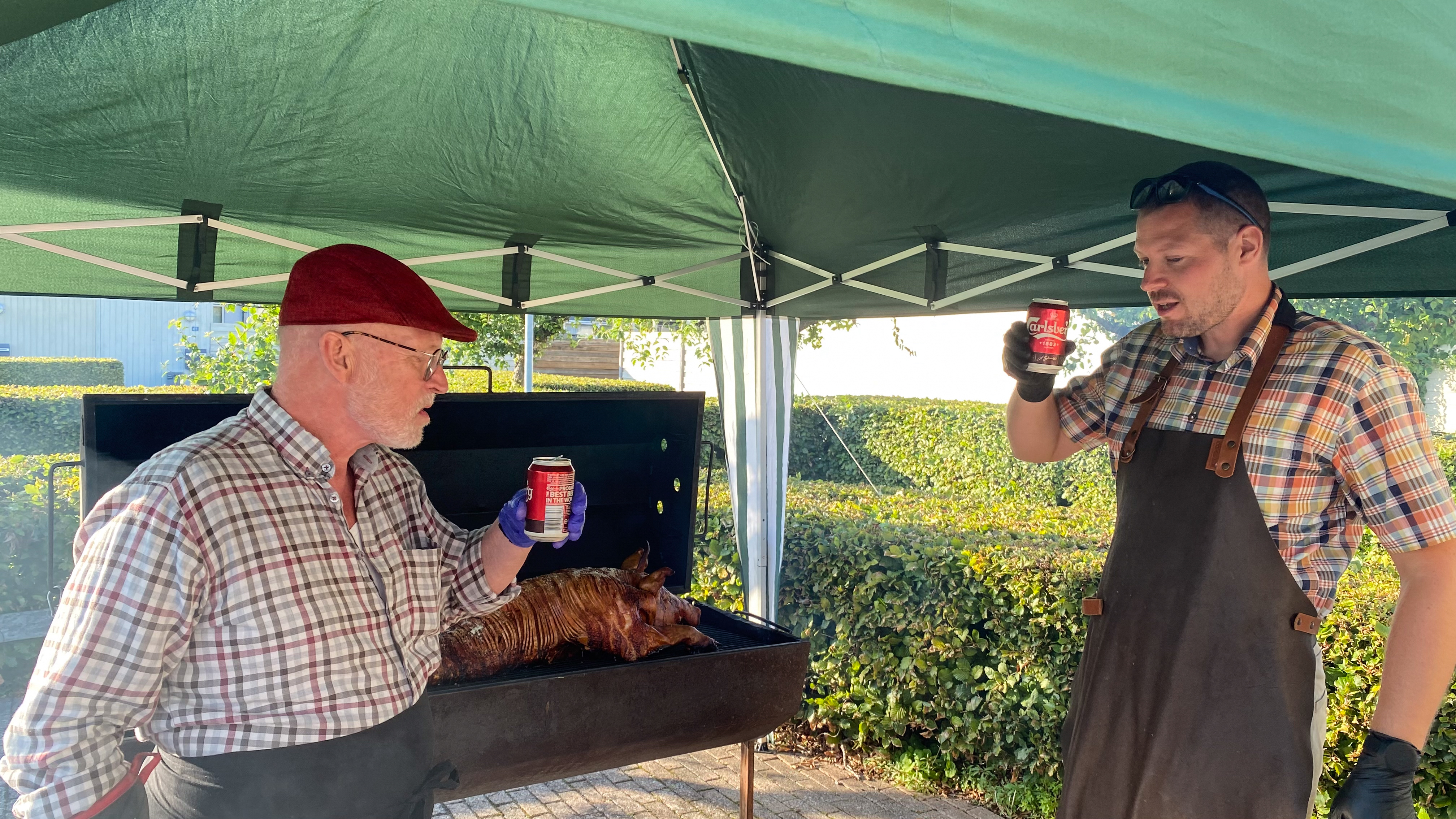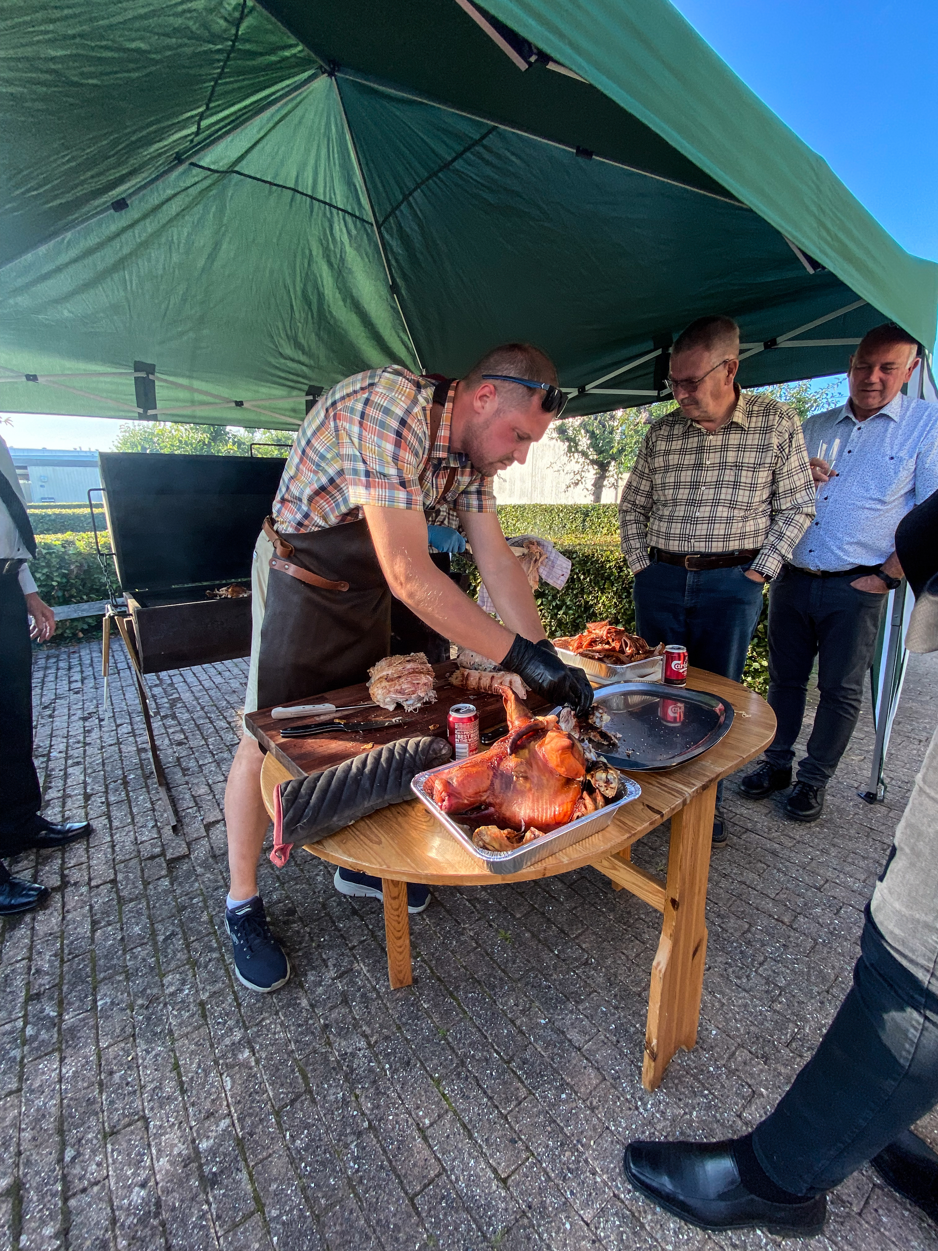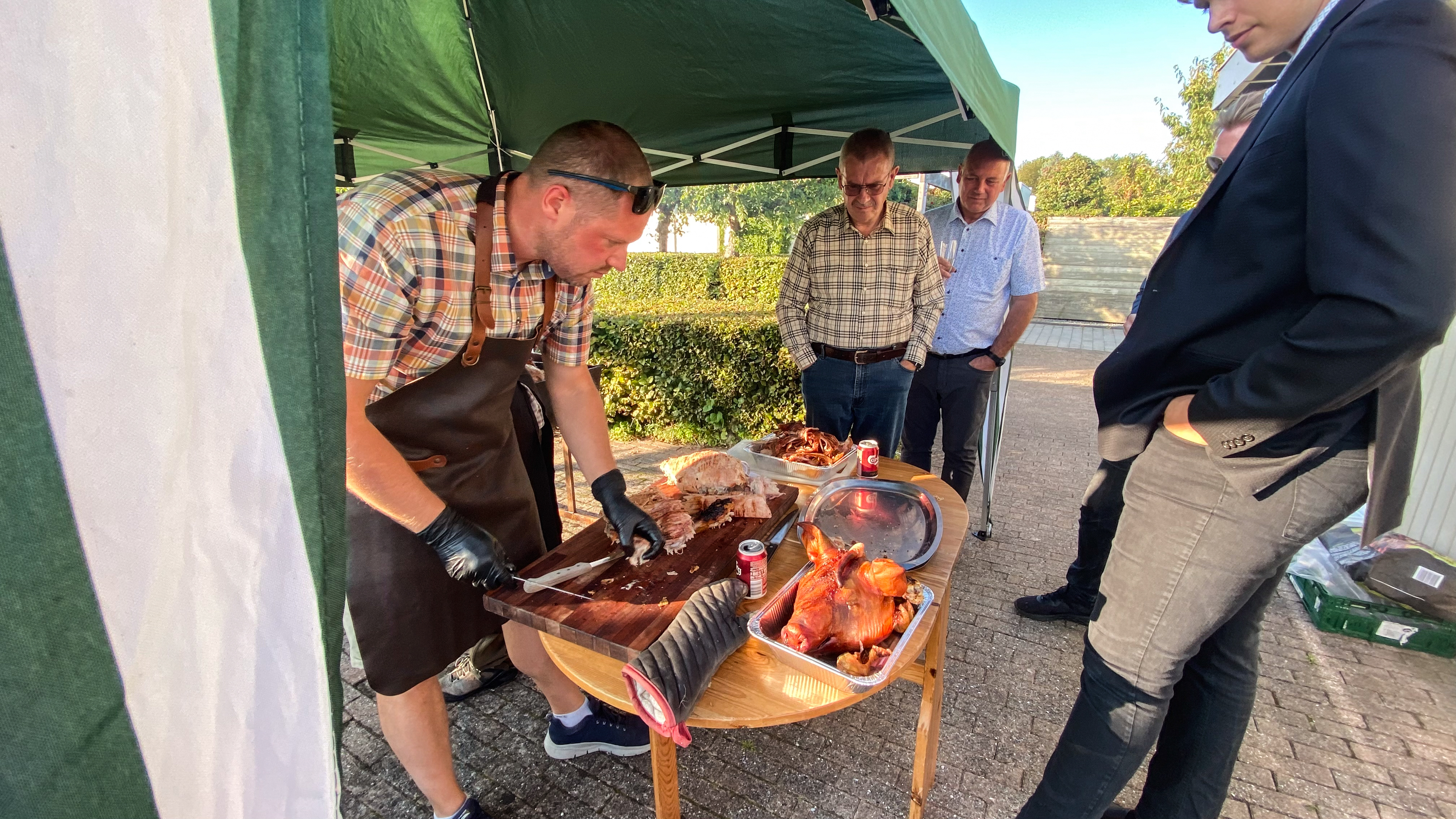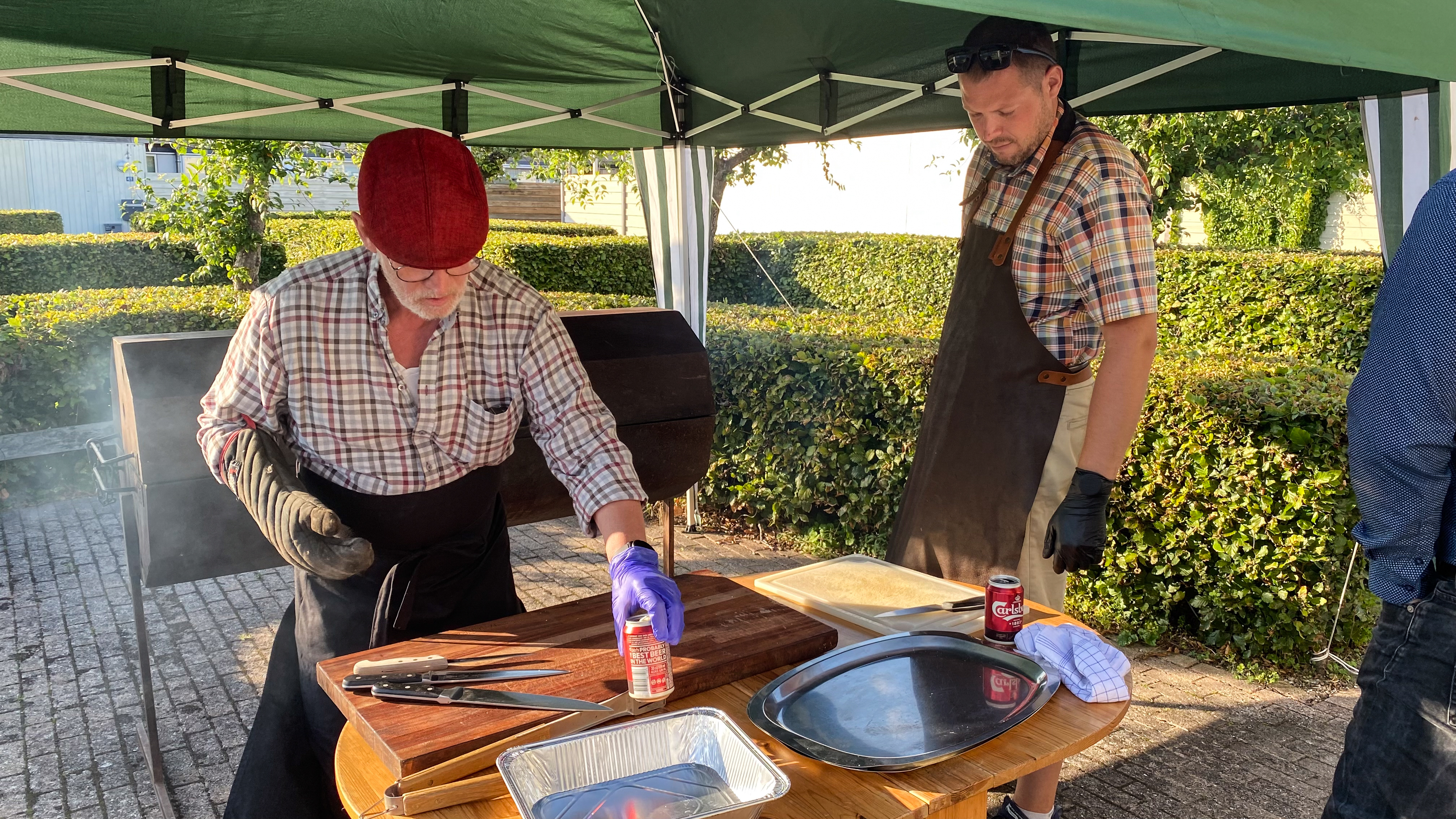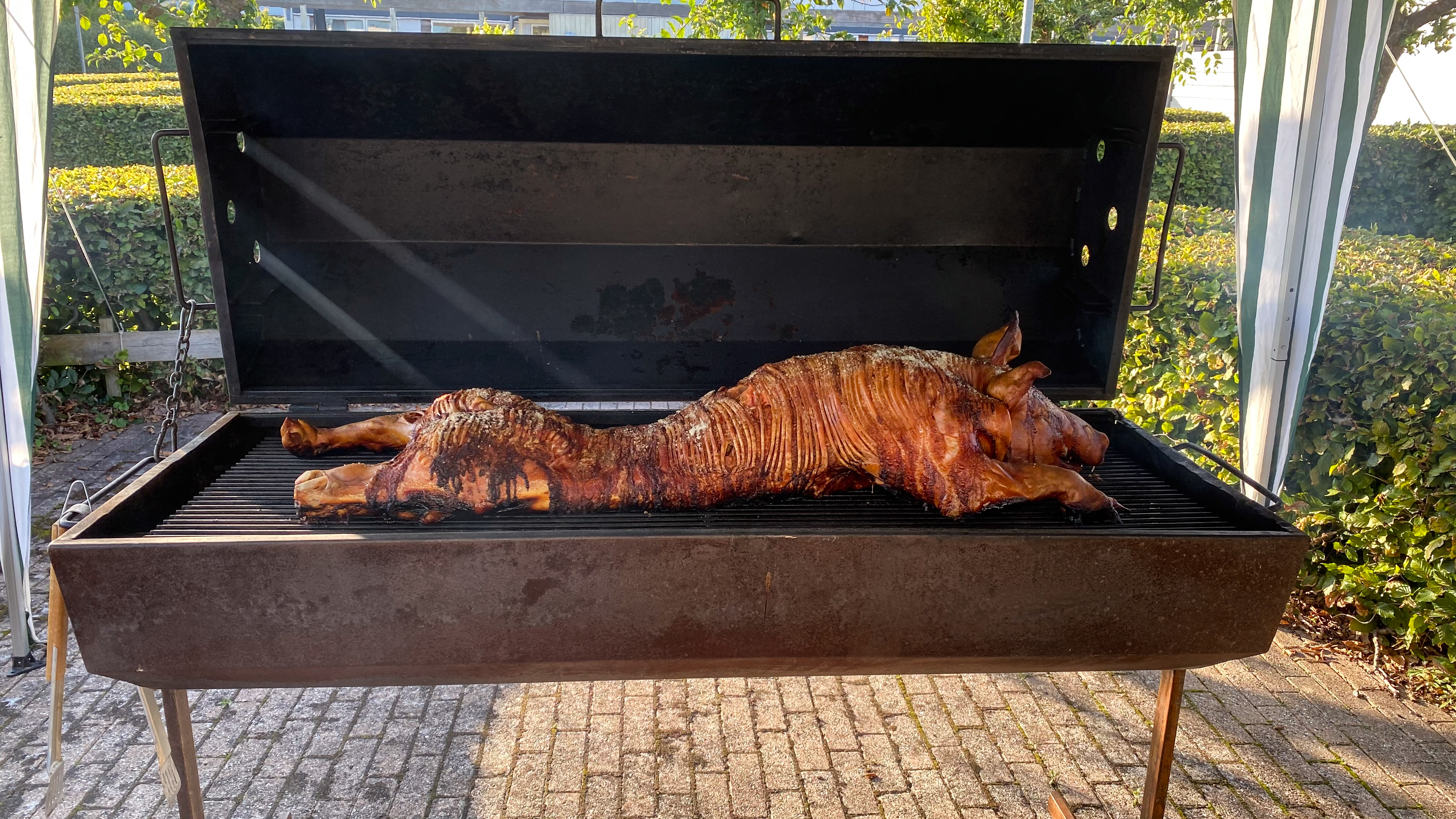 Ved ankomsten blev vi mødt af duften fra en helstegt gris på grillen, så man blev da hurtigt lidt småsulten igen.