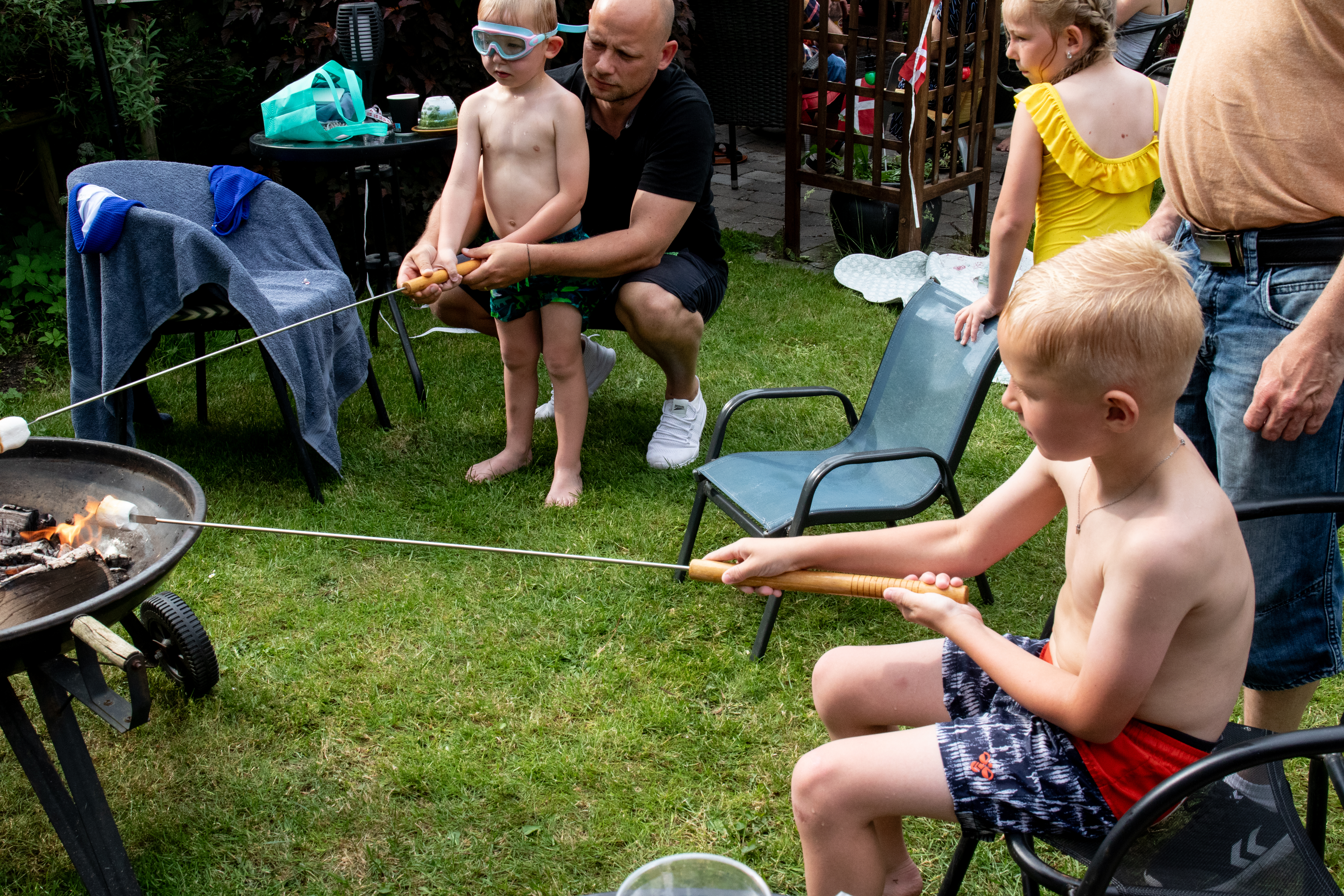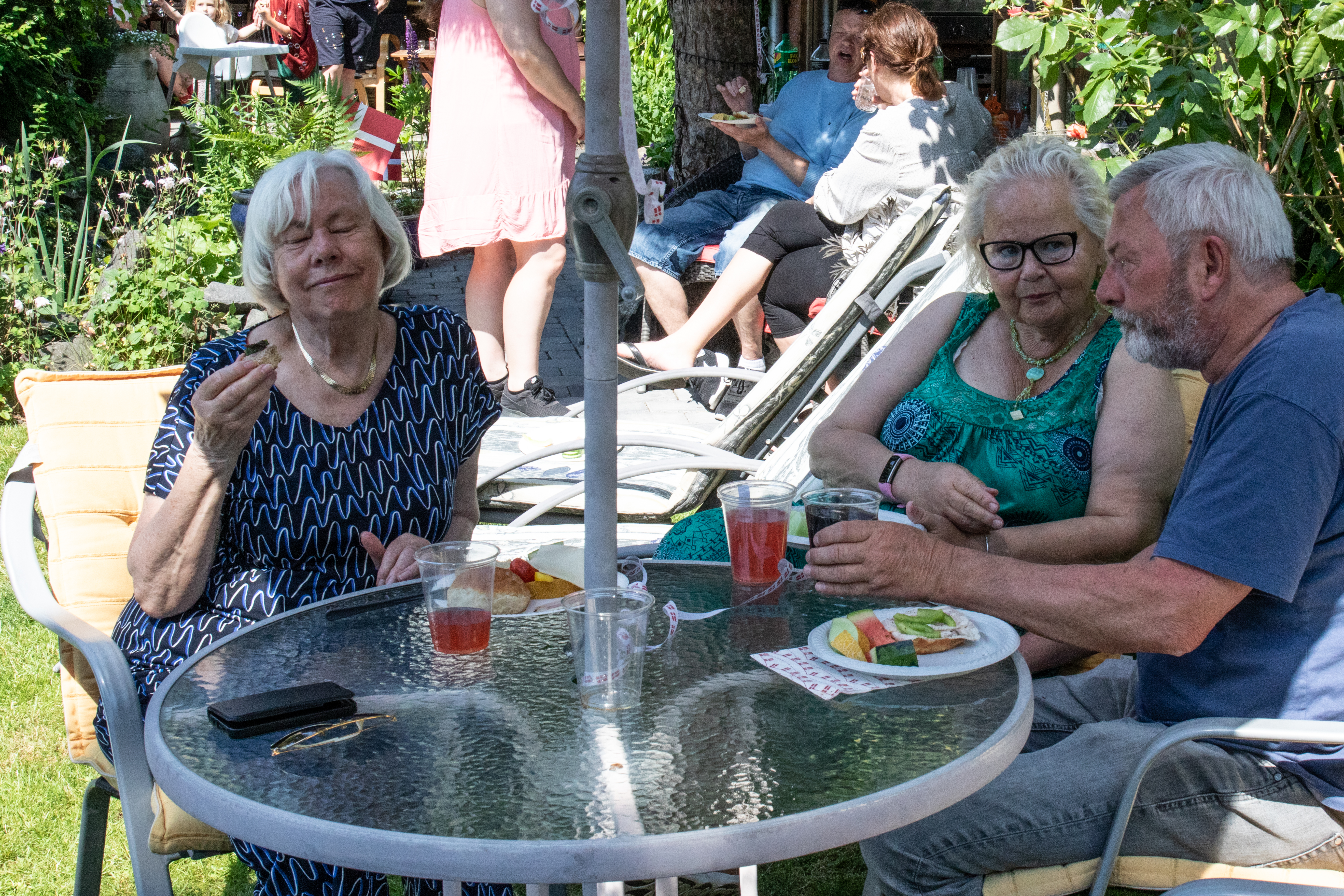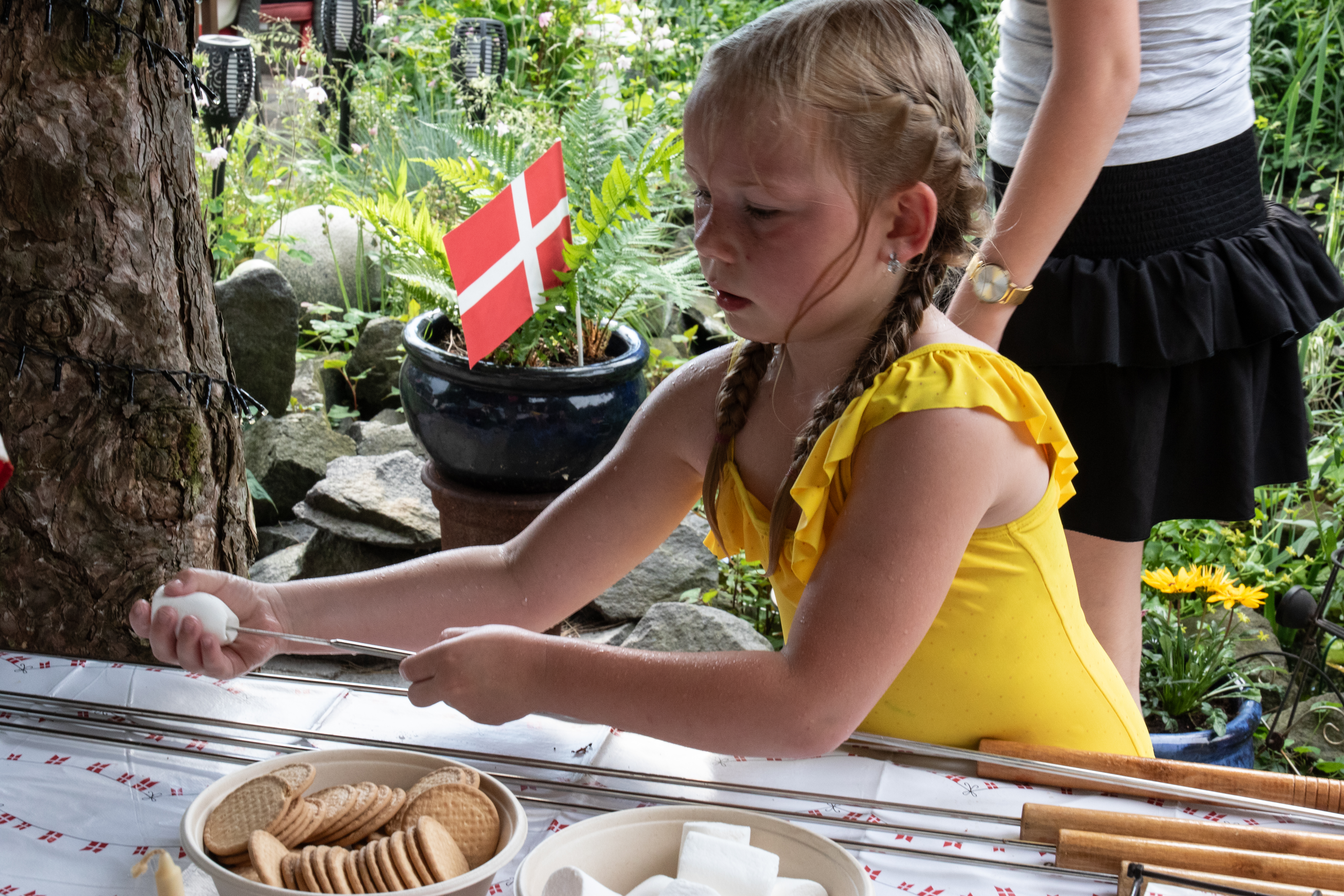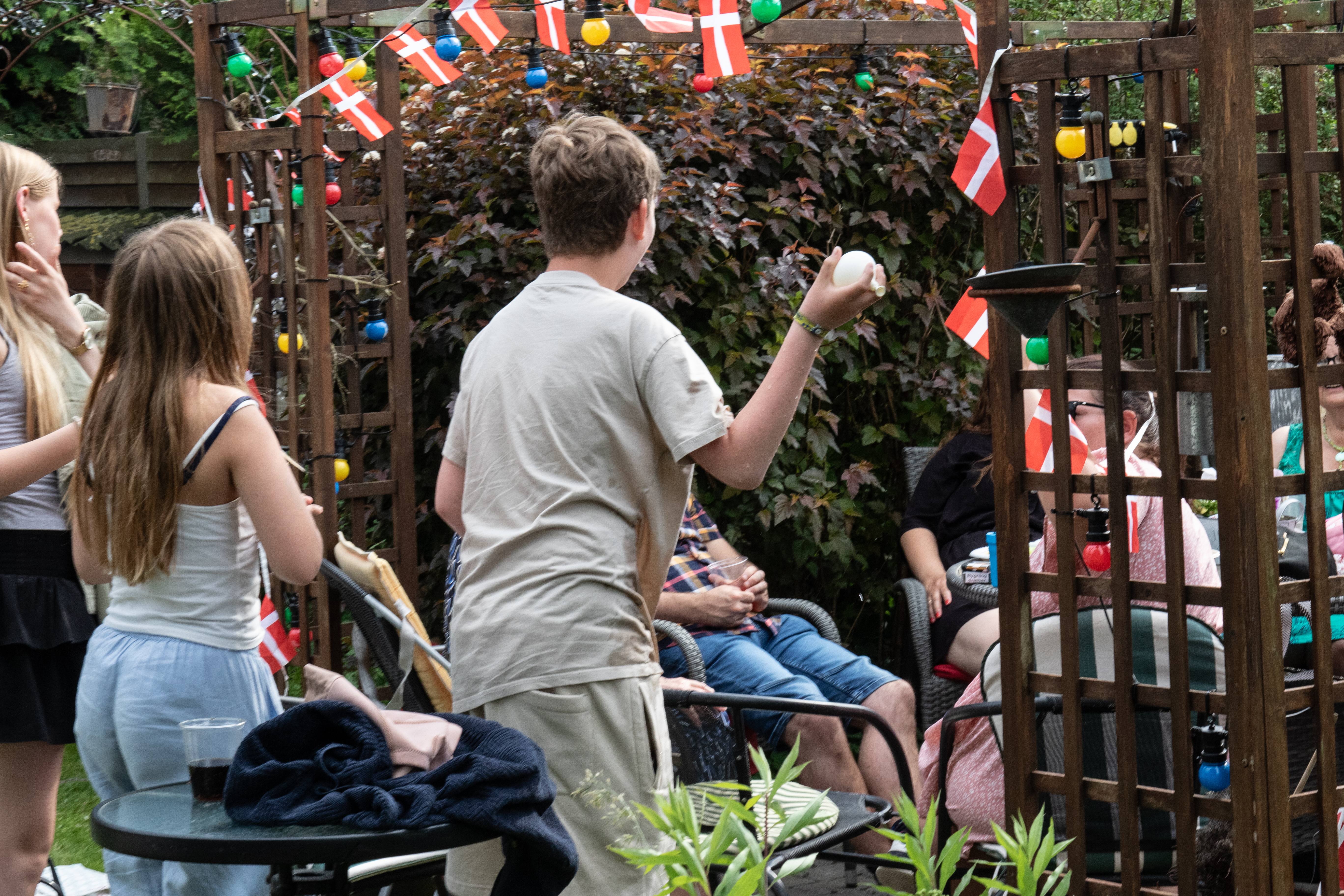 Kirsten og jeg lagde, traditionen tro, igen have til for de omkring 28 gæster – børn og voksne.