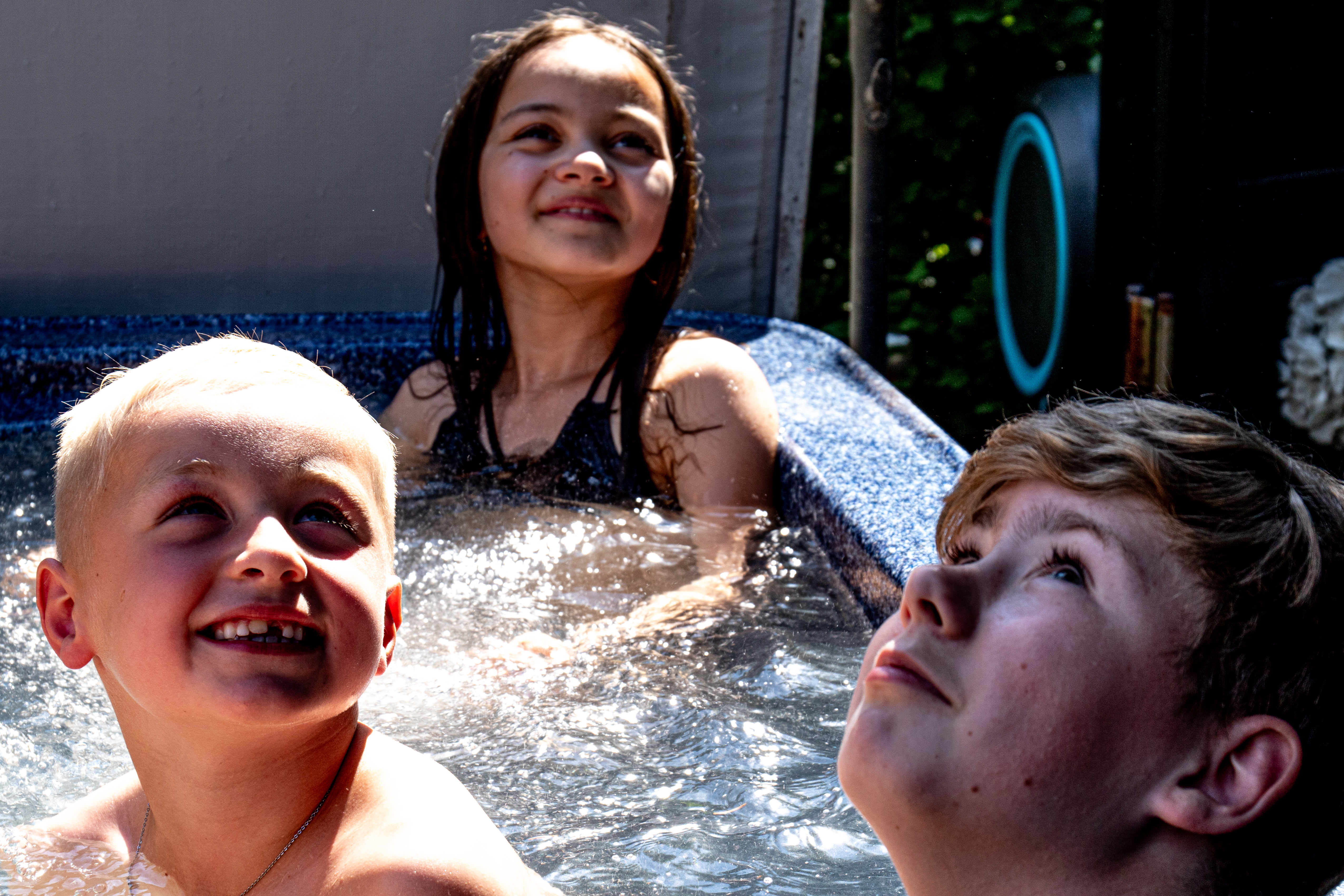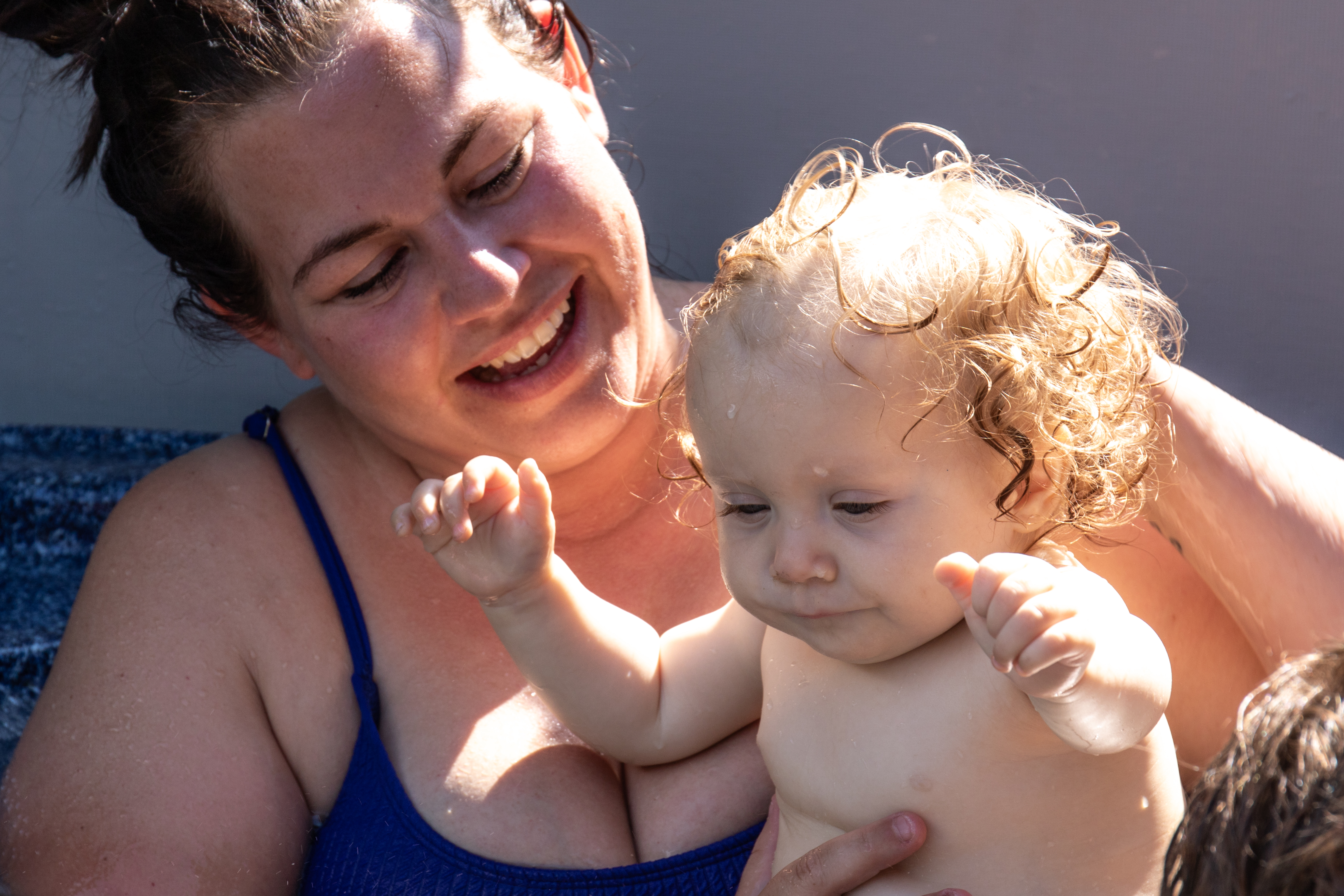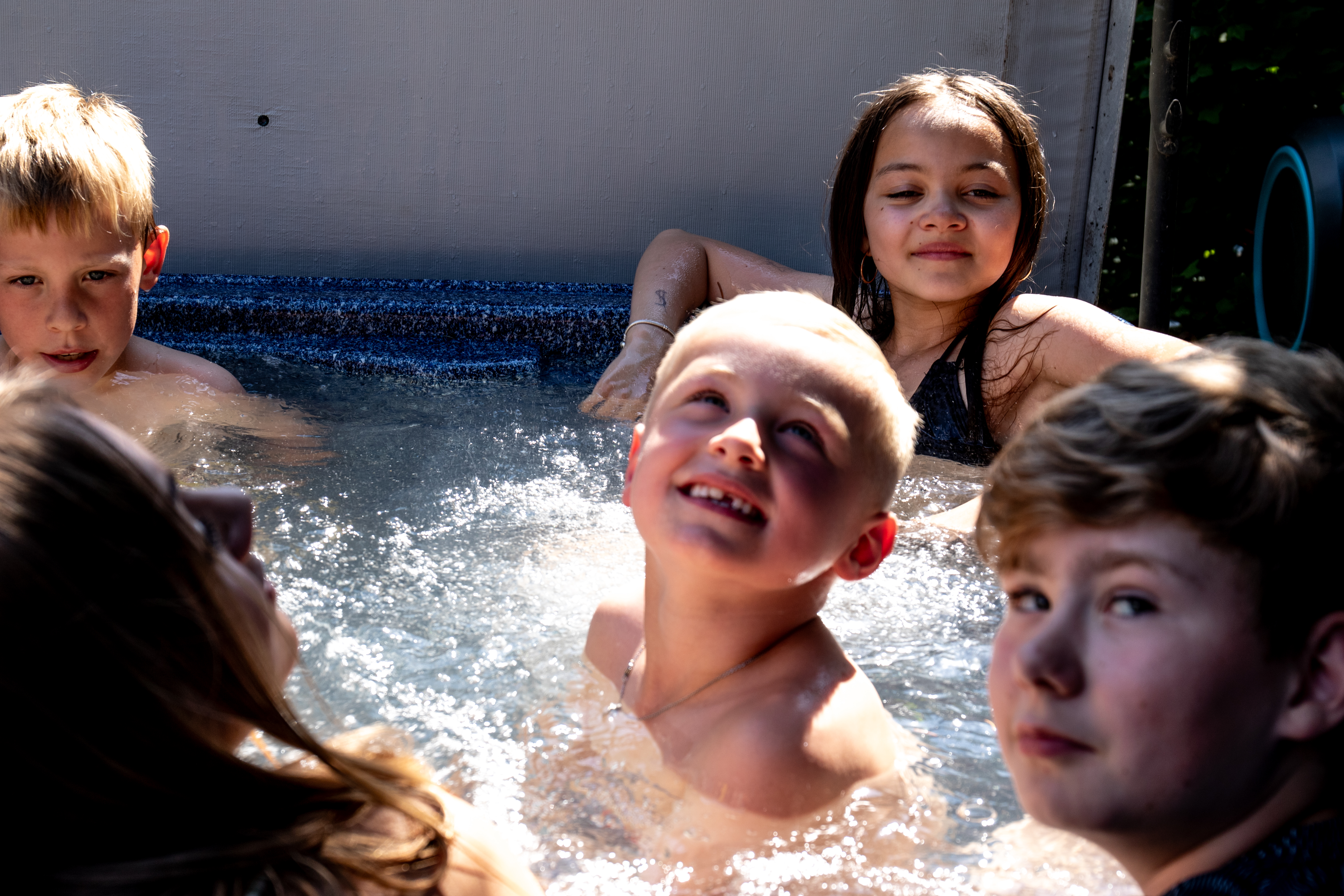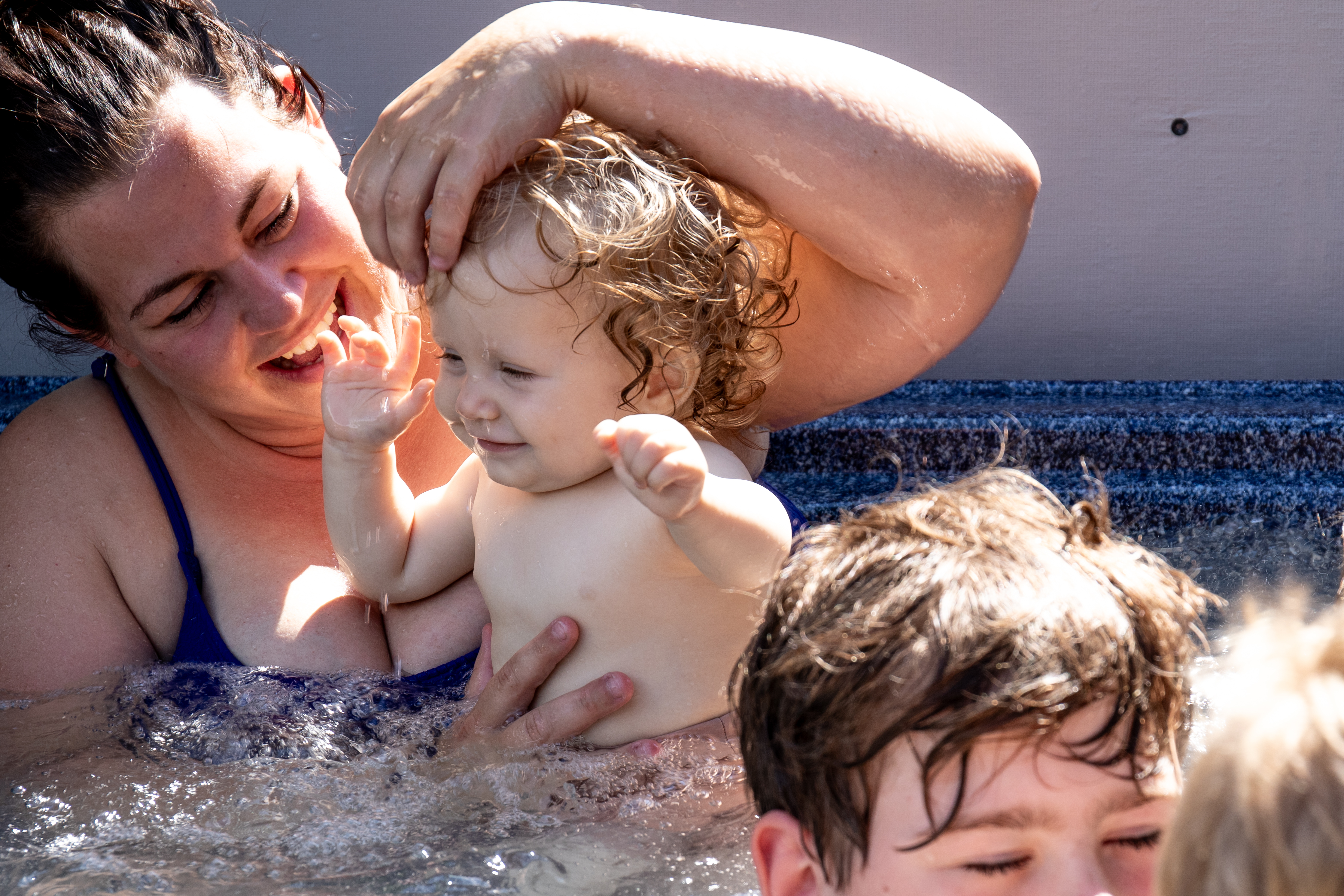 Spaen var selvfølgelig gjort klar med ekstra klor, der gør solbrændte børn (og Louise) helt hvide igen.