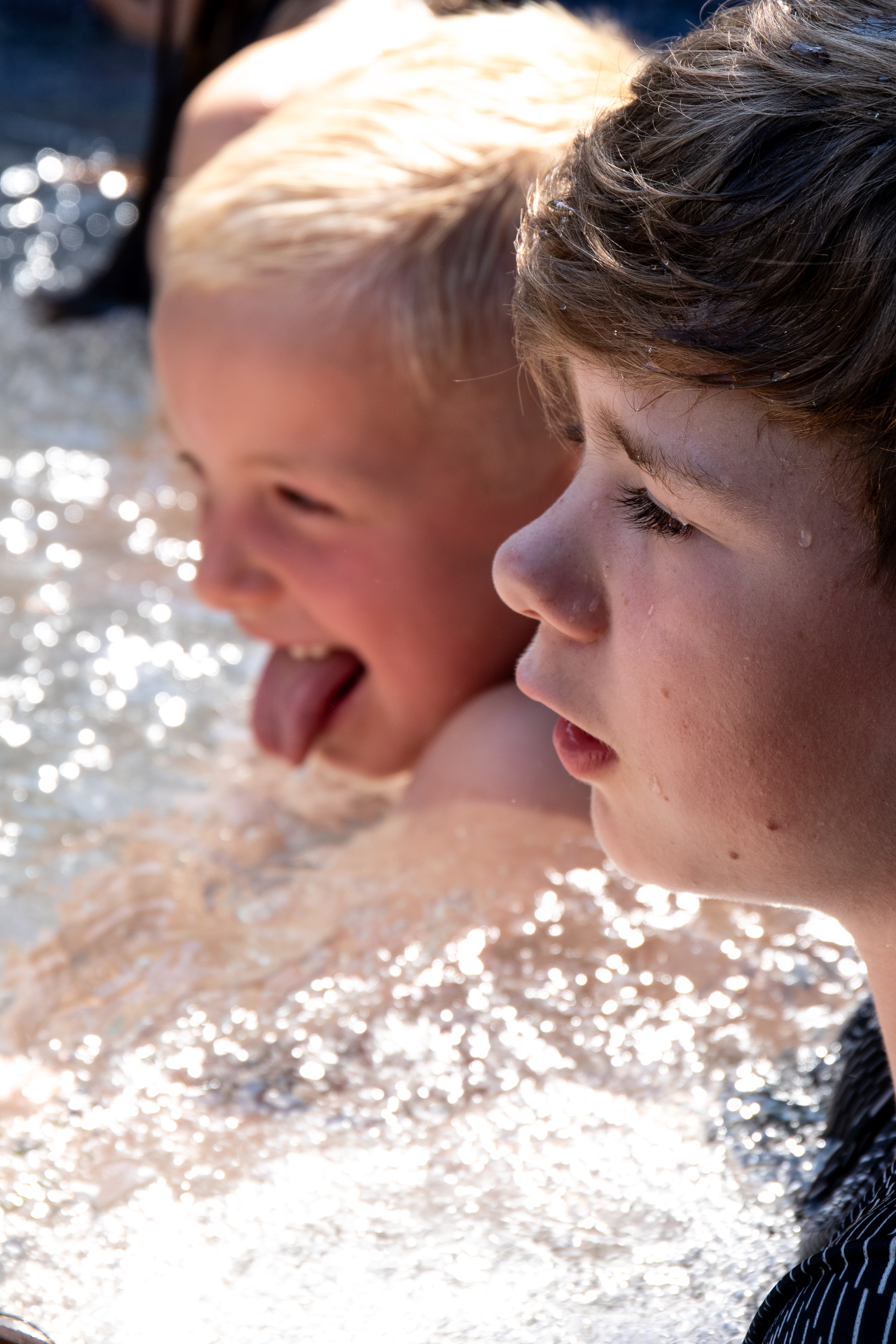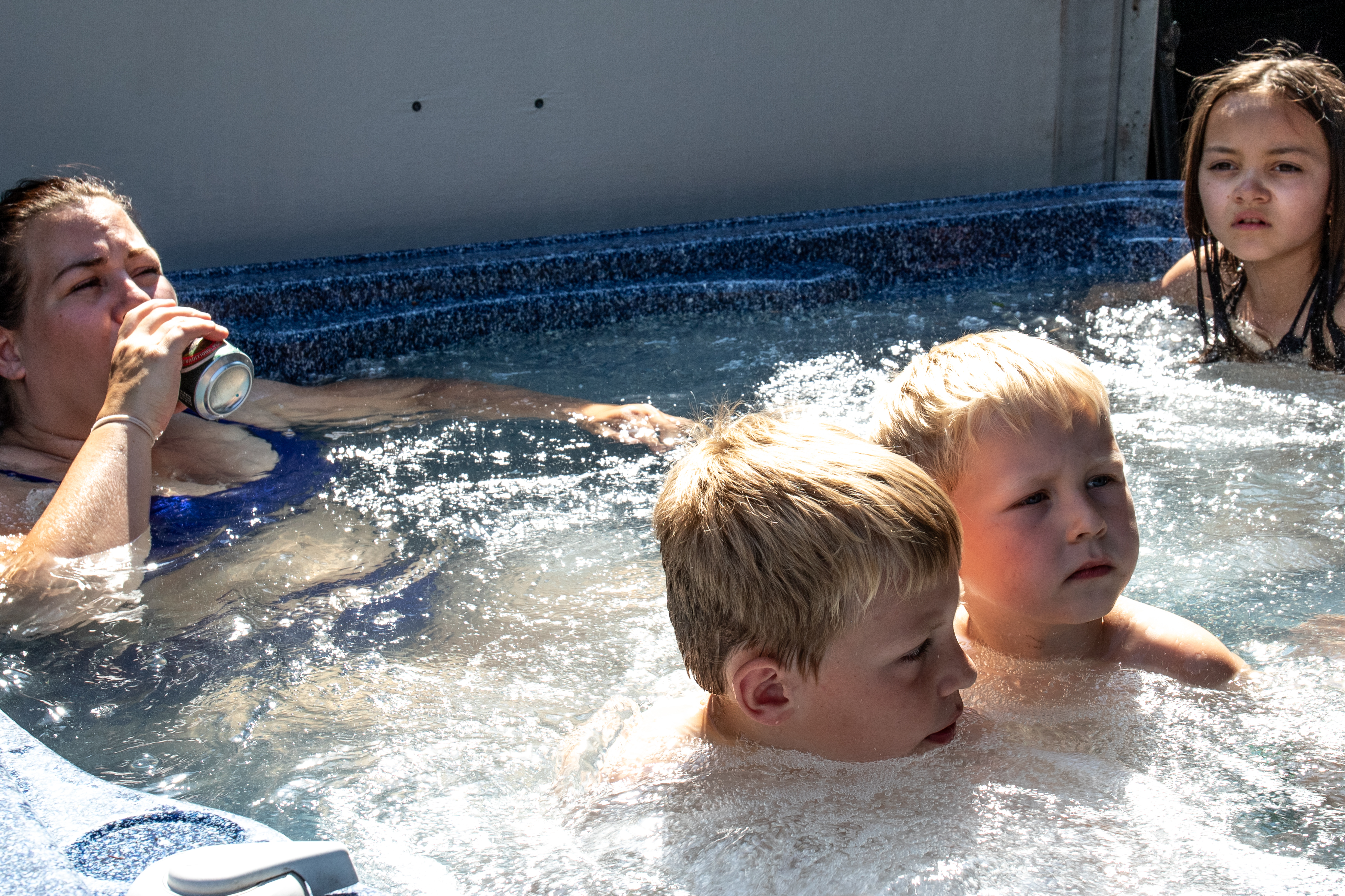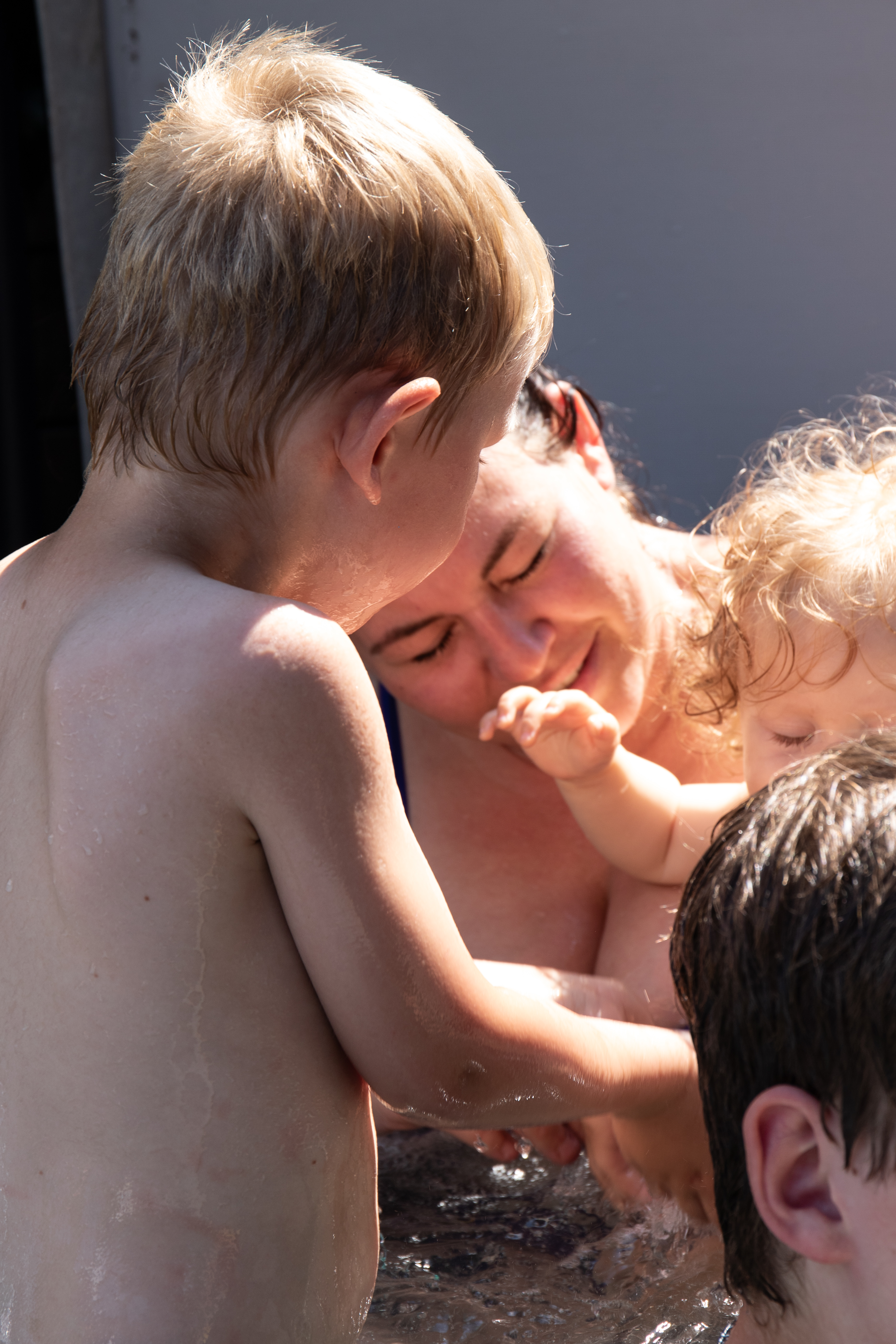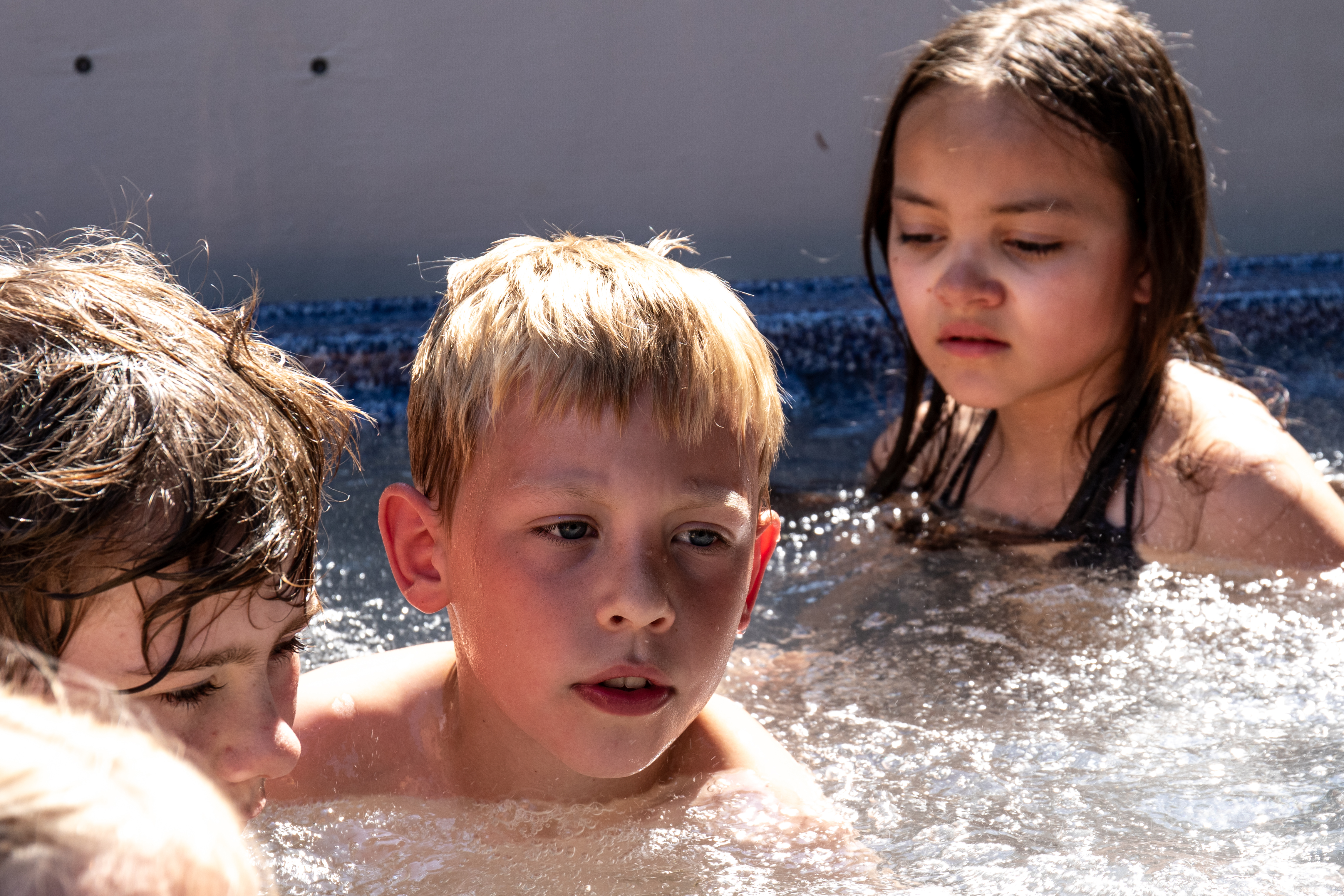 Spaen var selvfølgelig gjort klar med ekstra klor, der gør solbrændte børn (og Louise) helt hvide igen.