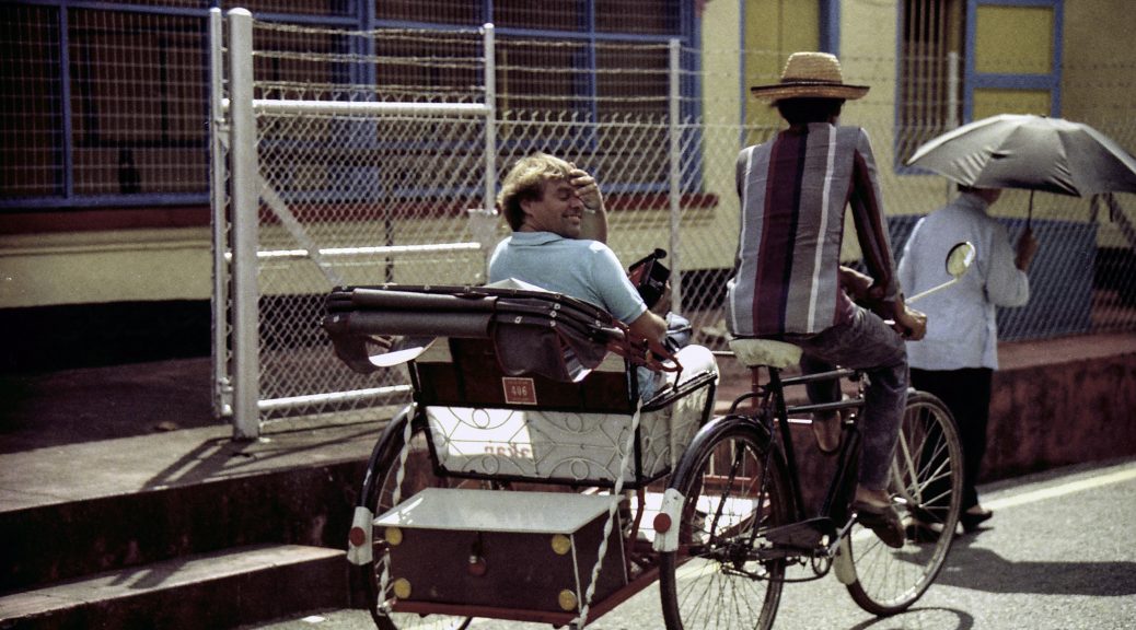 Efter at have anbragt vores baggage på hotellet, drog vi ud for at se byen. Vi fik fat i en trishaw (en cykel med sidevogn og en dertil hørende mand der tramper i pedalerne) – eller var det ham der fik fat i os? – og han kørte os rundt i en time og viste os byens seværdigheder. Meget interessant. Jeg kunne næsten ikke bære blot at sidde der – uden at hjælpe med pedalerne.