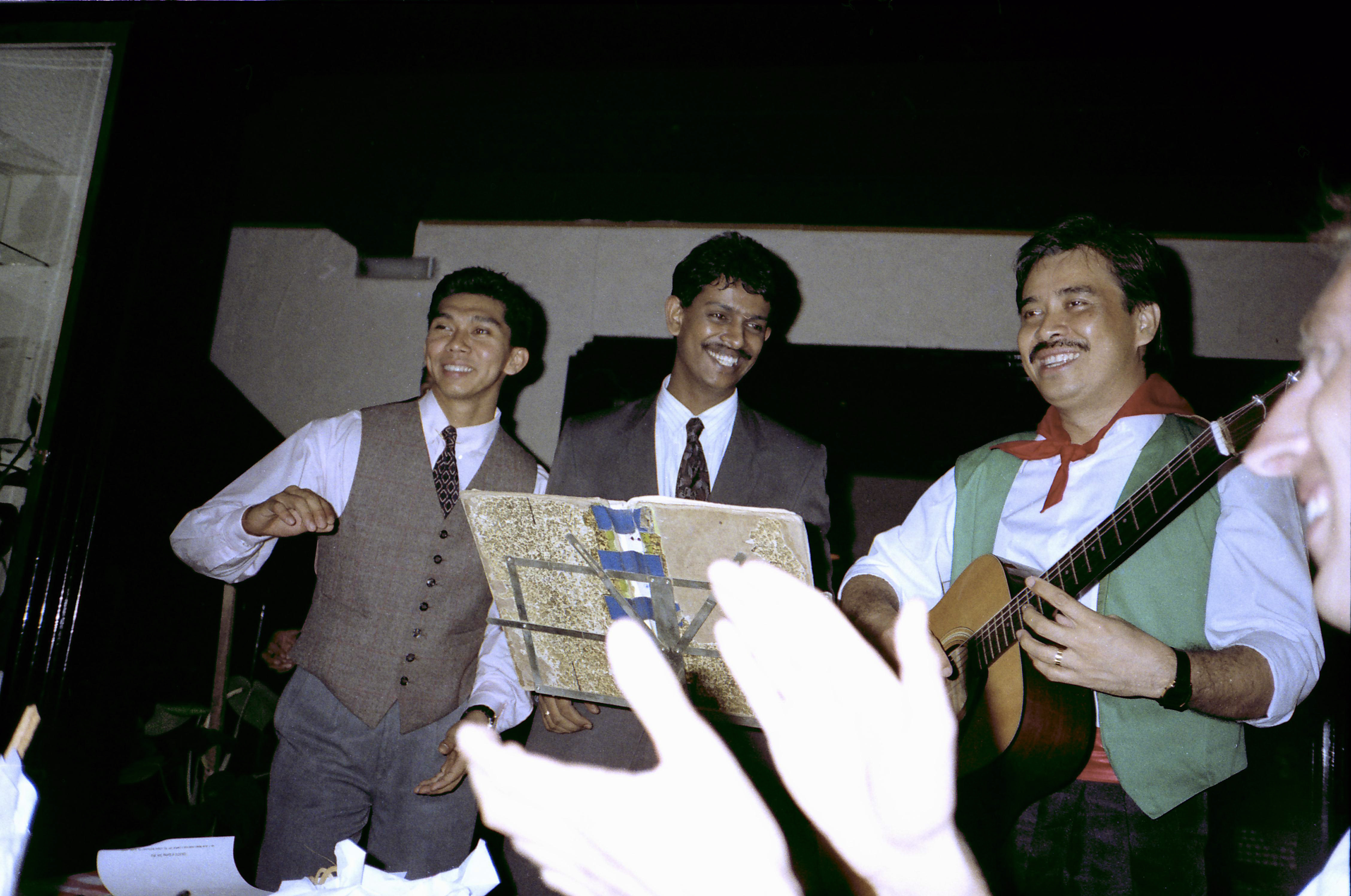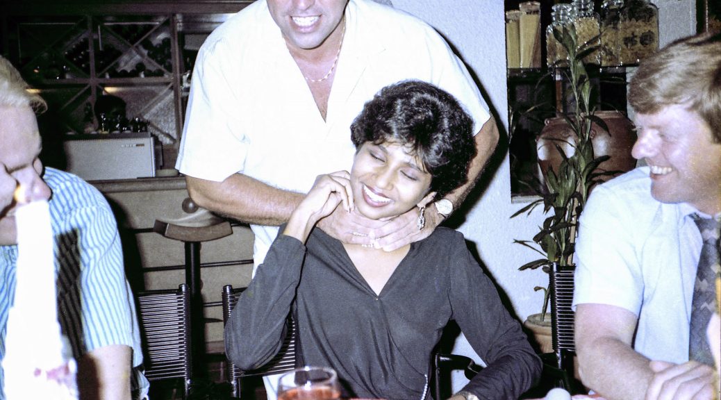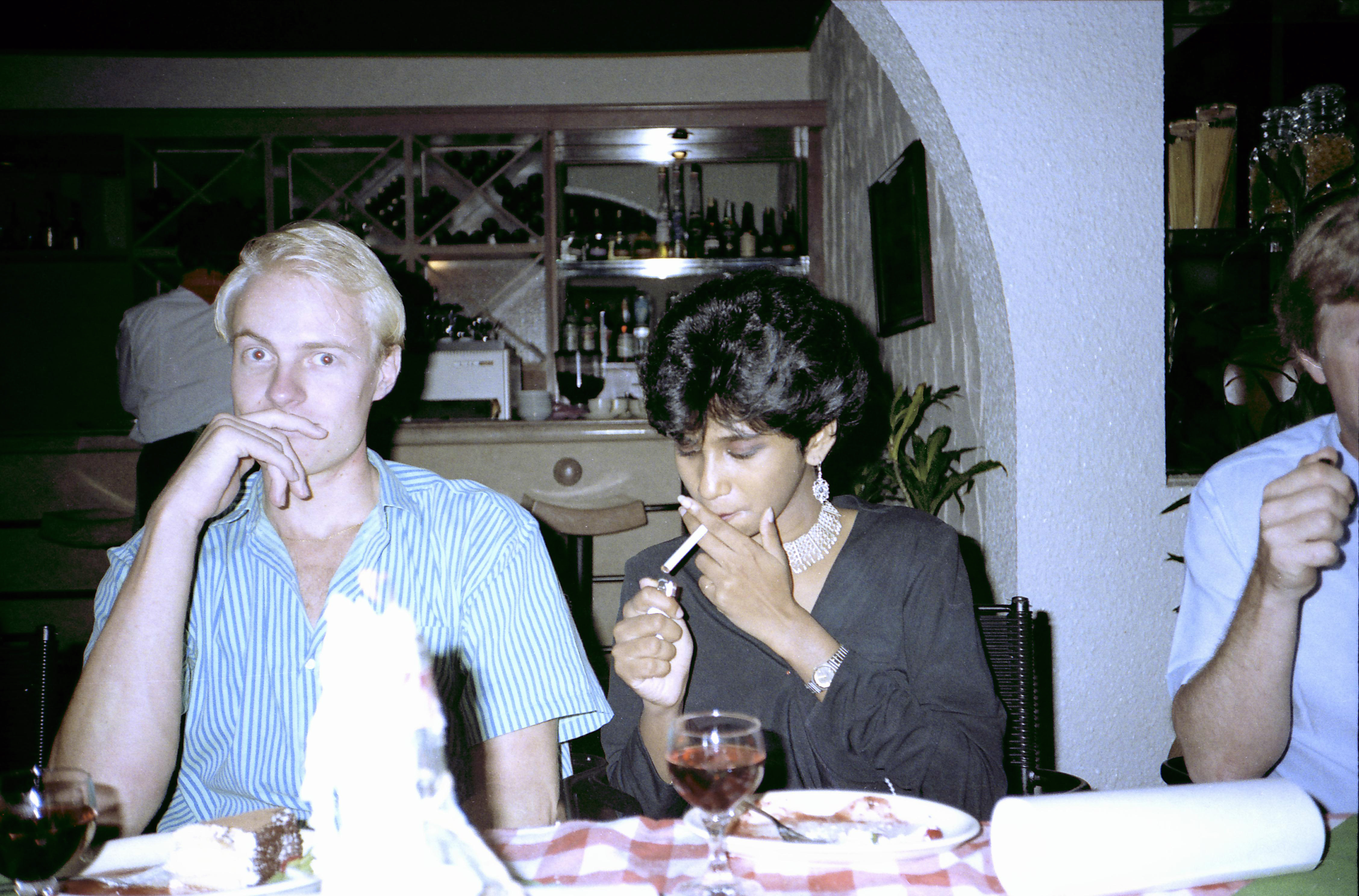 Under hele middagen kæmpede en sanger med sin guitar for at overdøve det efterhånden noget højrøstede selskab. På et eller andet tidspunkt – langt over tolv (tjenerne så umådeligt trætte ud og der havde længe ikke været andre gæster) – drog vi i taxaer til et diskotek, der ligger lige ved siden af, hvor vi bor. Så kunne alle bare vakle hjem, når de syntes.