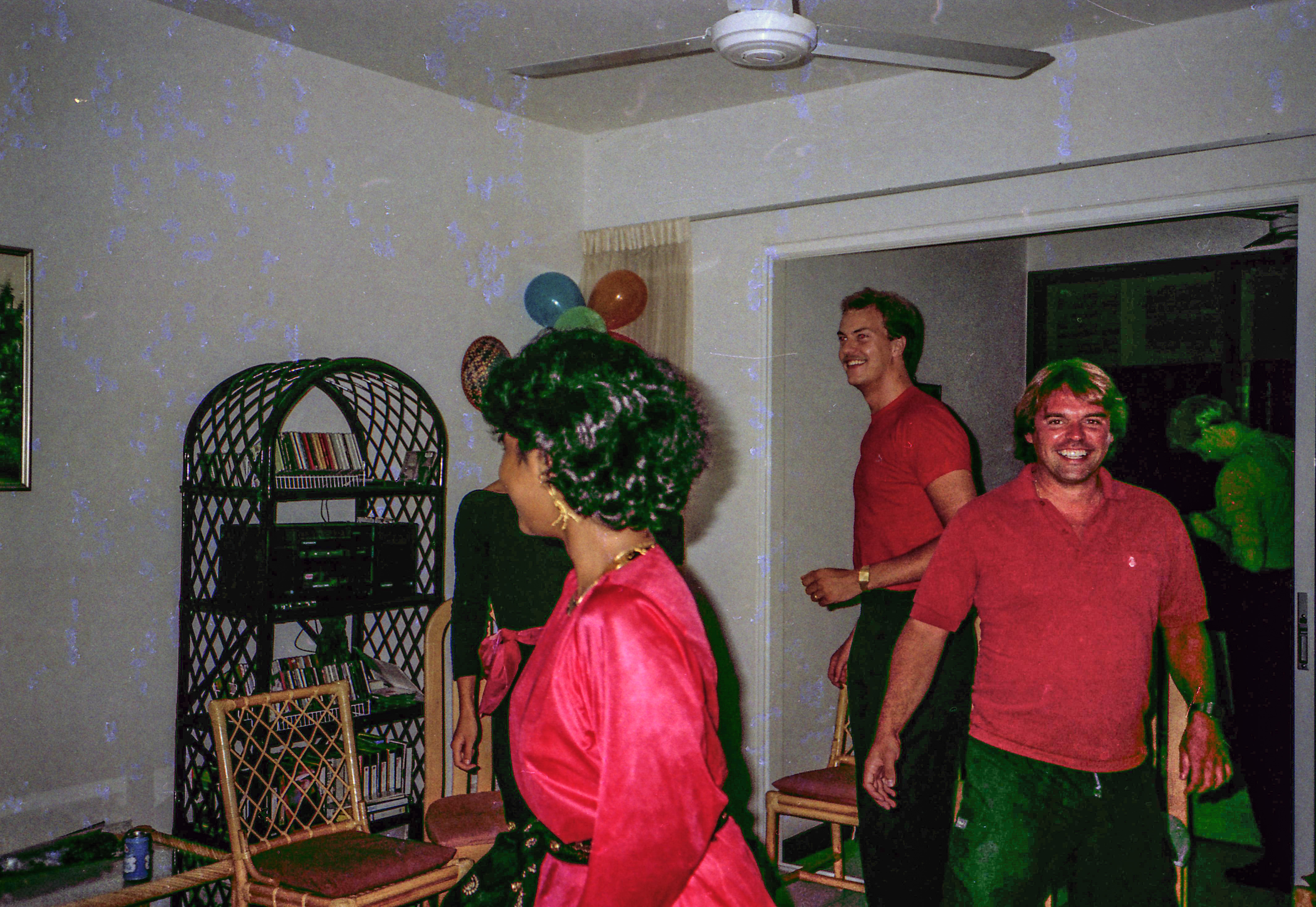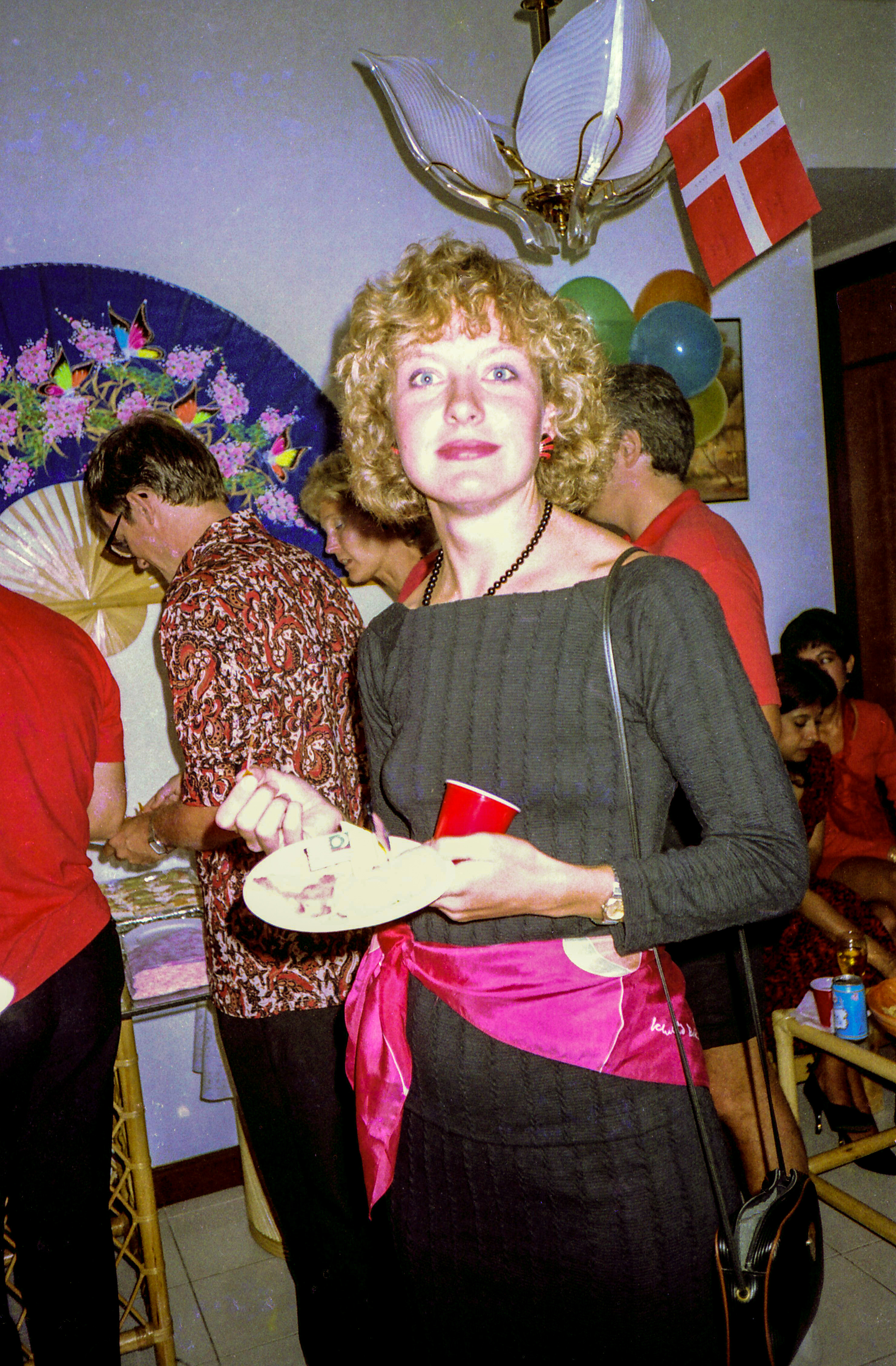 Vi var selvfølgelig alle inviteret, og der var en dresskode. Vi skulle være klædt i rødt og sort, og det voldte Gitte noget besvær at få mig klædt på i disse farver. Efter at hun måtte ty til at farve et par af mine gamle bukser sort, så var også jeg klar til festen.