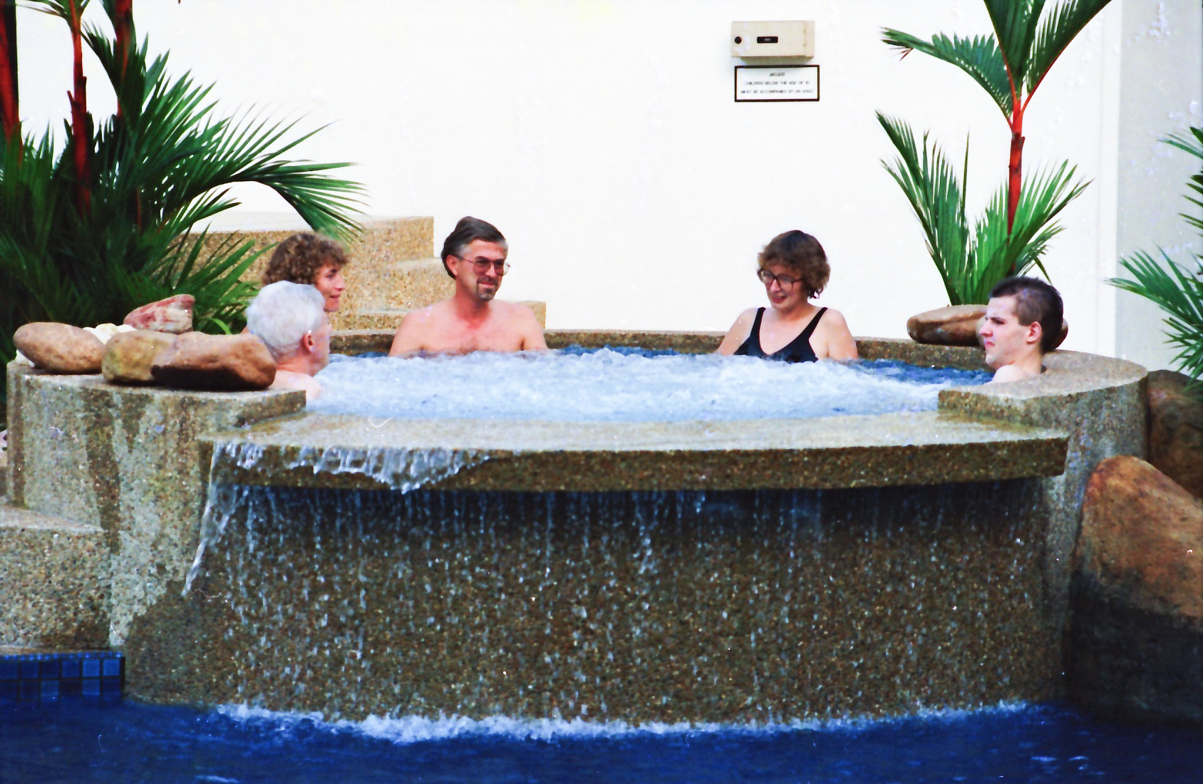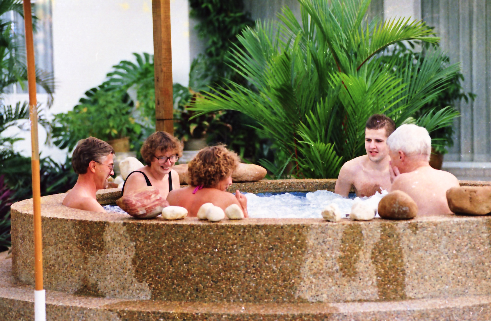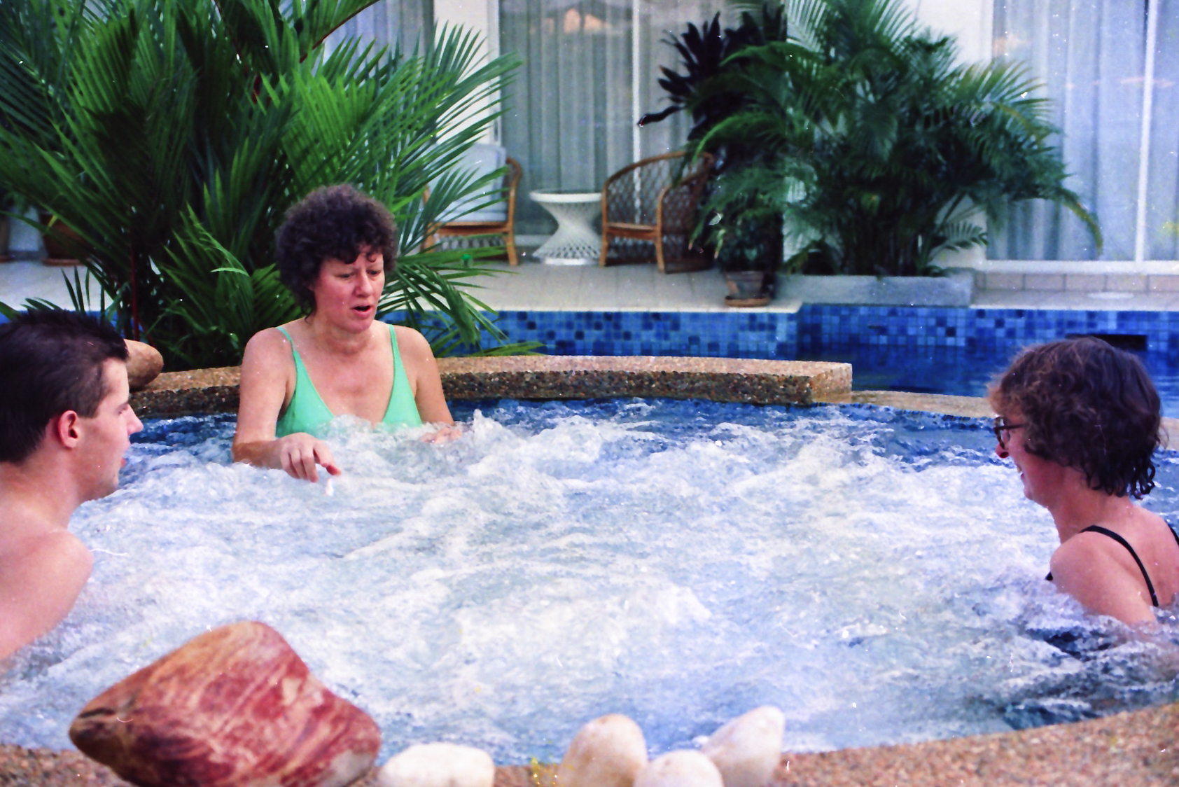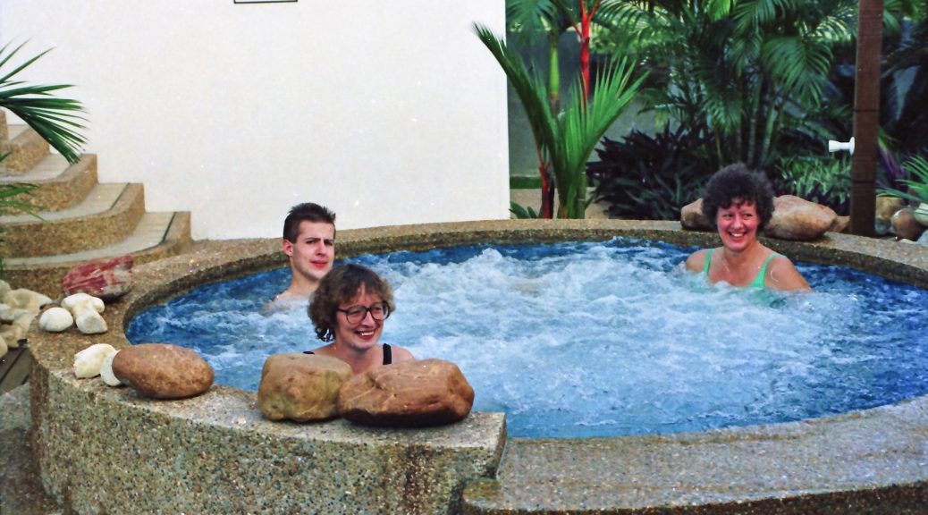 Nå, men Finn og hans kone Hanne havde valgt at bo i et andet lejlighedskompleks i nærheden af, hvor vi andre boede. De havde deres søn på besøg i julen, og her er vi andre inviteret på SPA og mad hos dem.