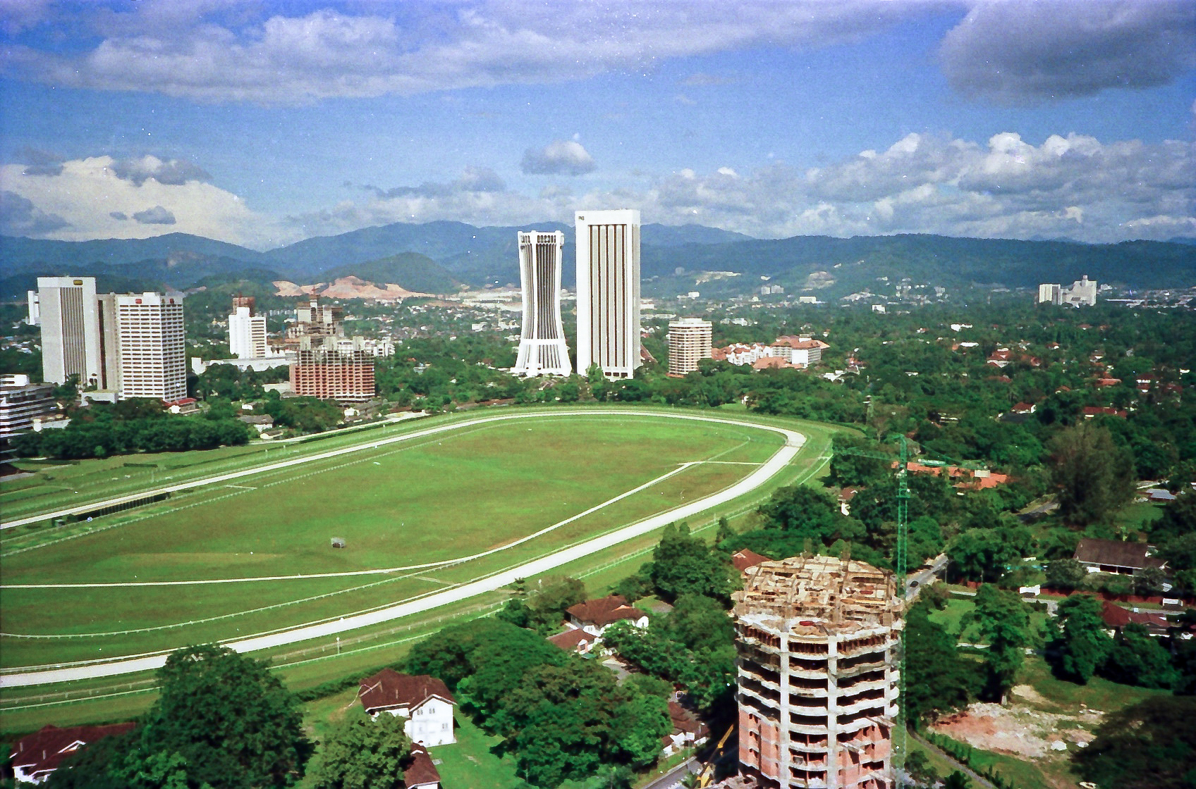 Fra Hilton er der udsigt over Kuala Lumpurs væddeløbsbane, hvor der ofte holdes hestevæddeløb.