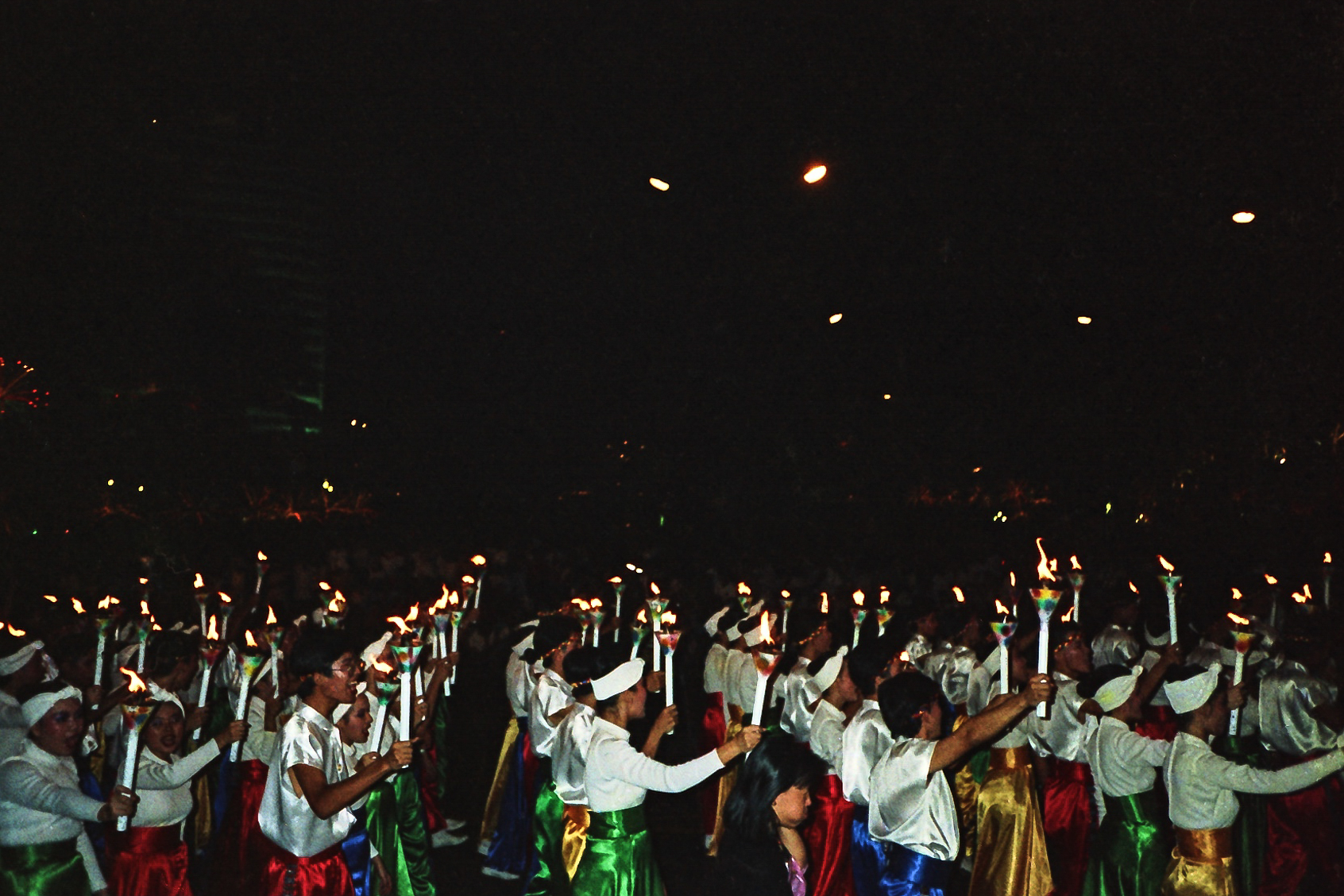 Der har været fest i byen, og Gitte og jeg troppede op sammen med 100.000 andre mennesker inde i Kuala Lumpurs centrum, hvor vi troede, at vi skulle se optog og optræden.