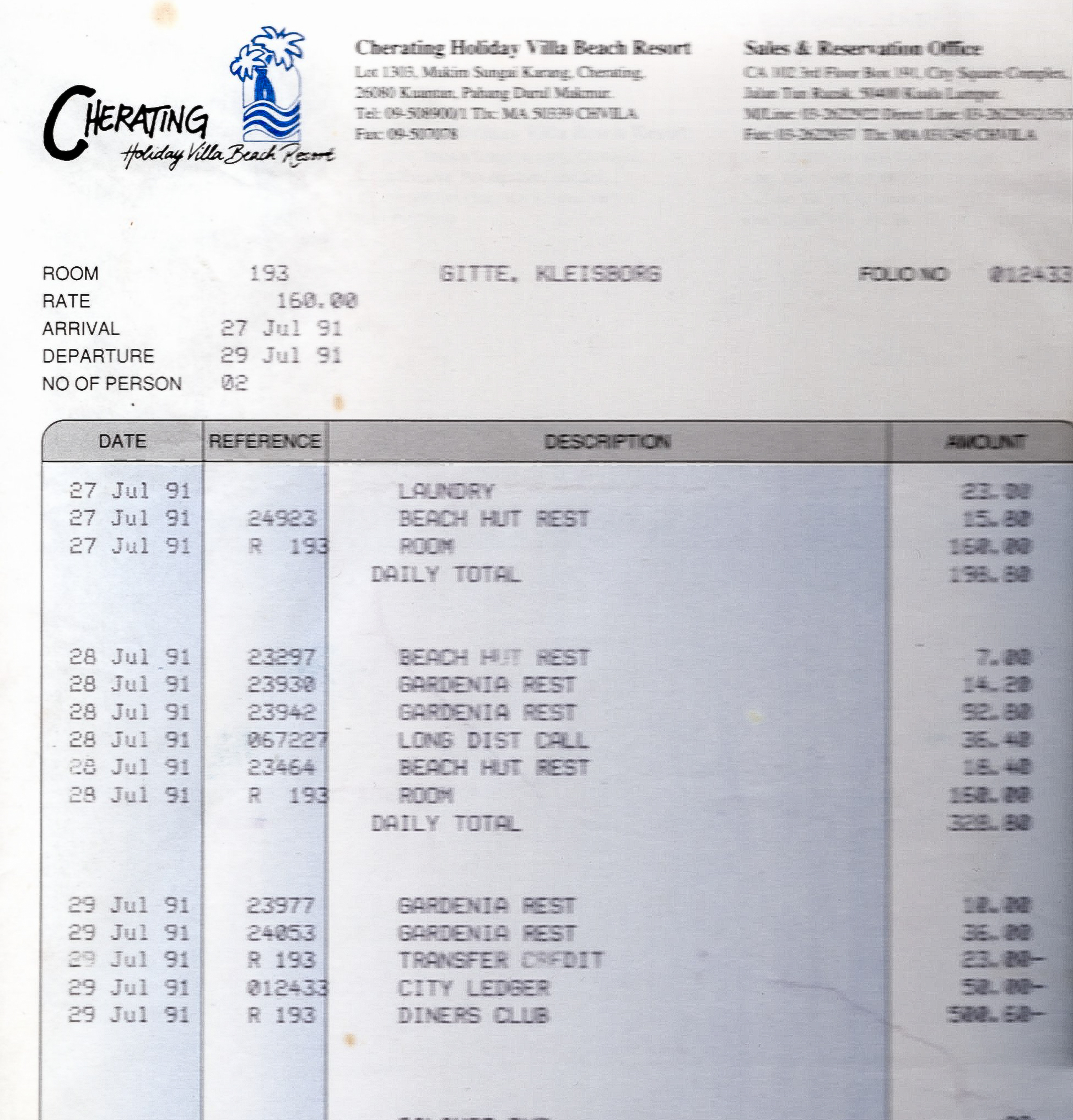 Vores tur til Cherating på Østkysten gik fint, men der skete ikke de store ting. Vejret kunne have været bedre, idet vi havde en del skyer – men det regnede da ikke, så det kunne have været værre.