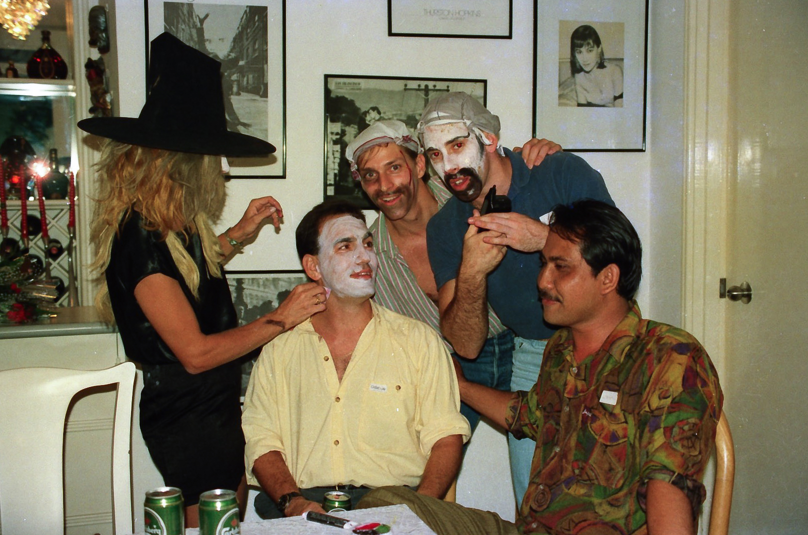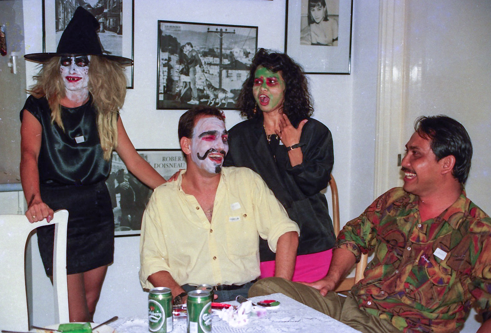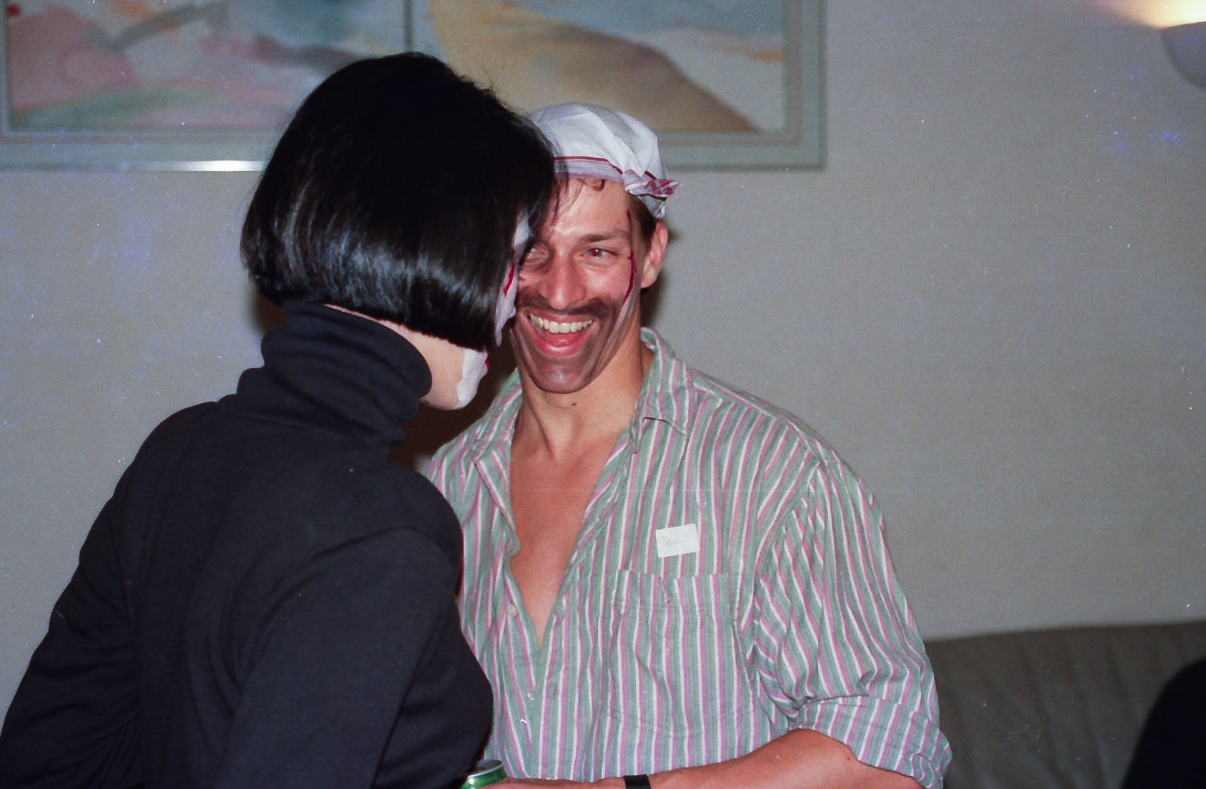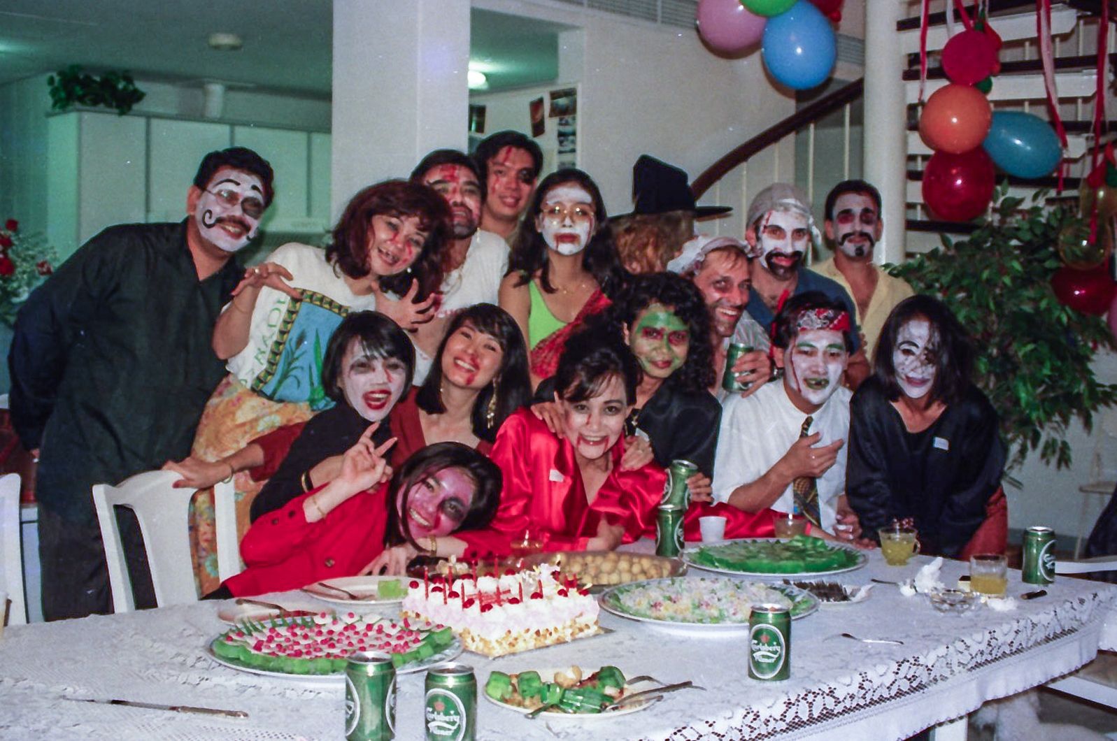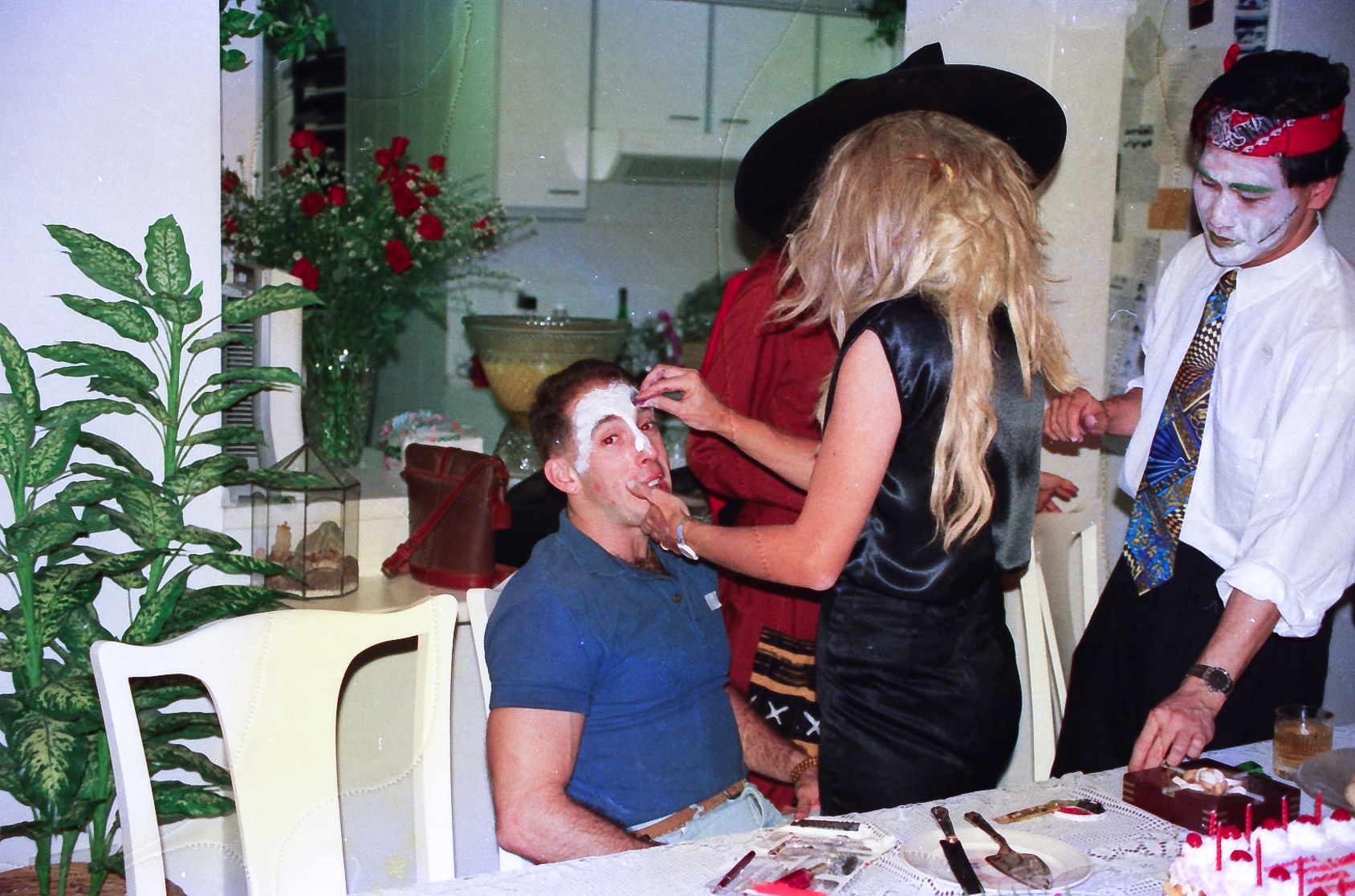 Hun fik fat i en stor kasse sminke, og så gik hun ellers i gang fra en ende af. Snart var alle gæster gjort meget uhyggelige – ihverfald i hovedet, og det satte faktisk god gang i stemningen.