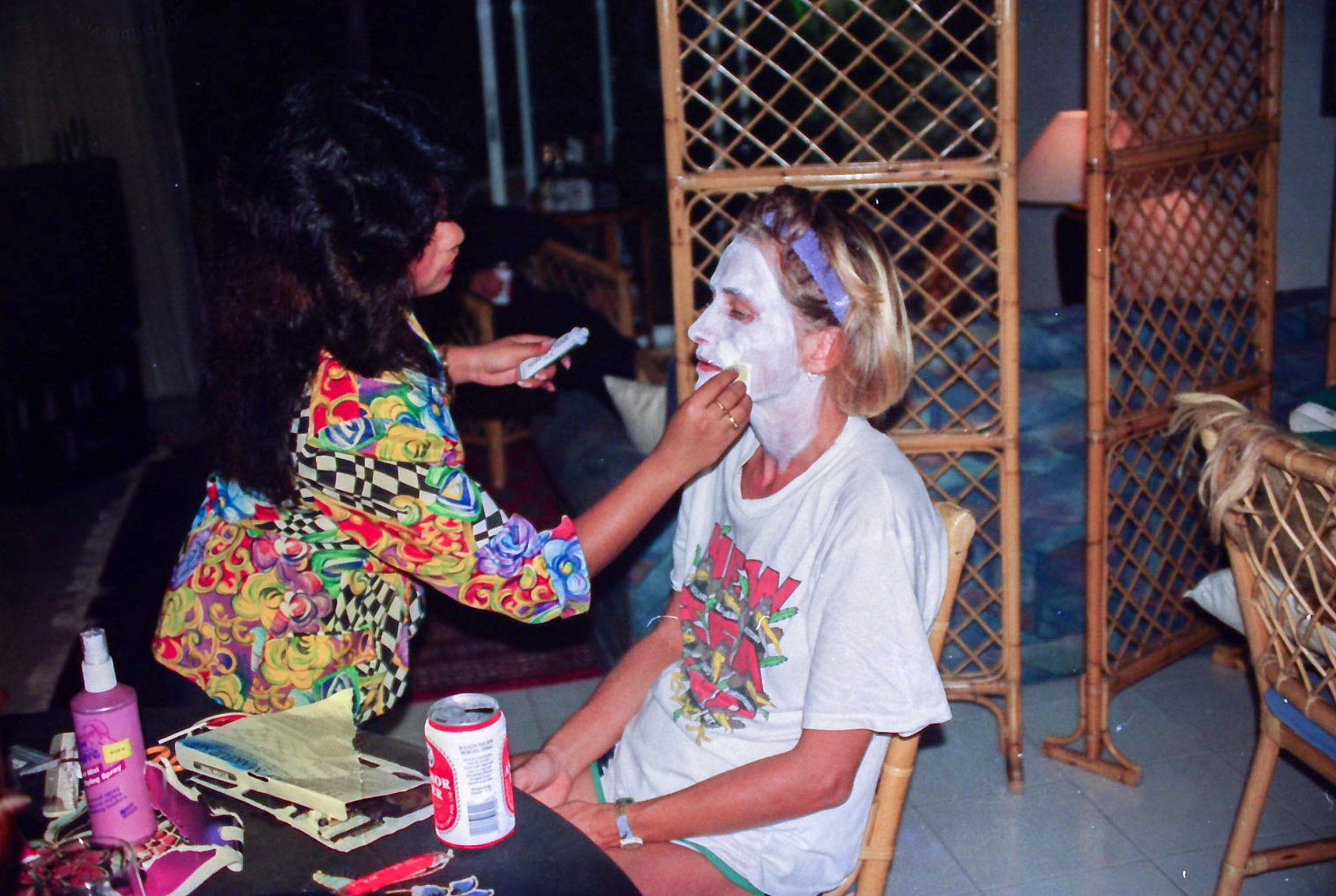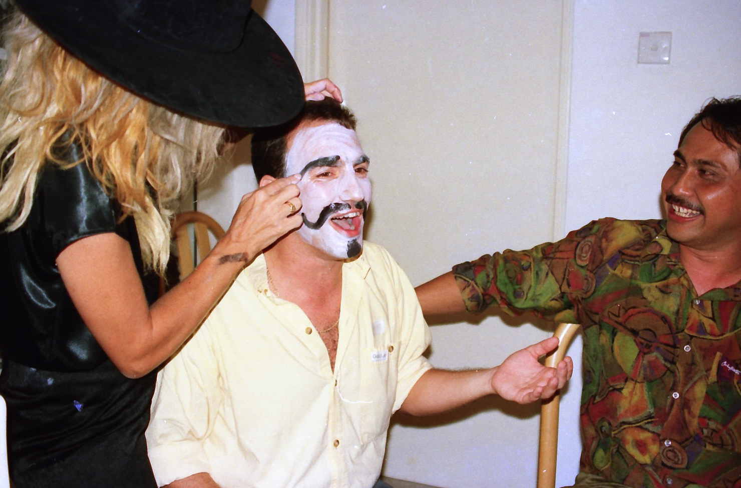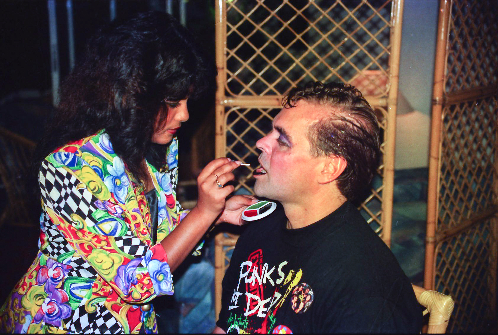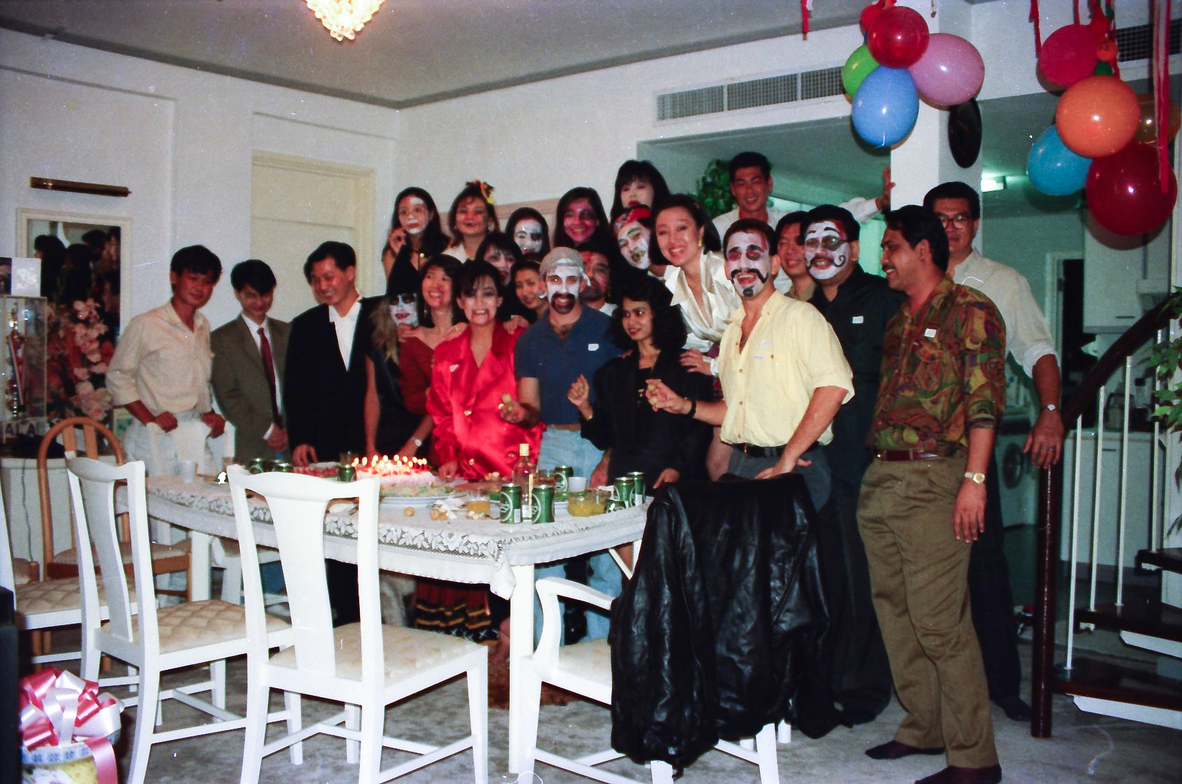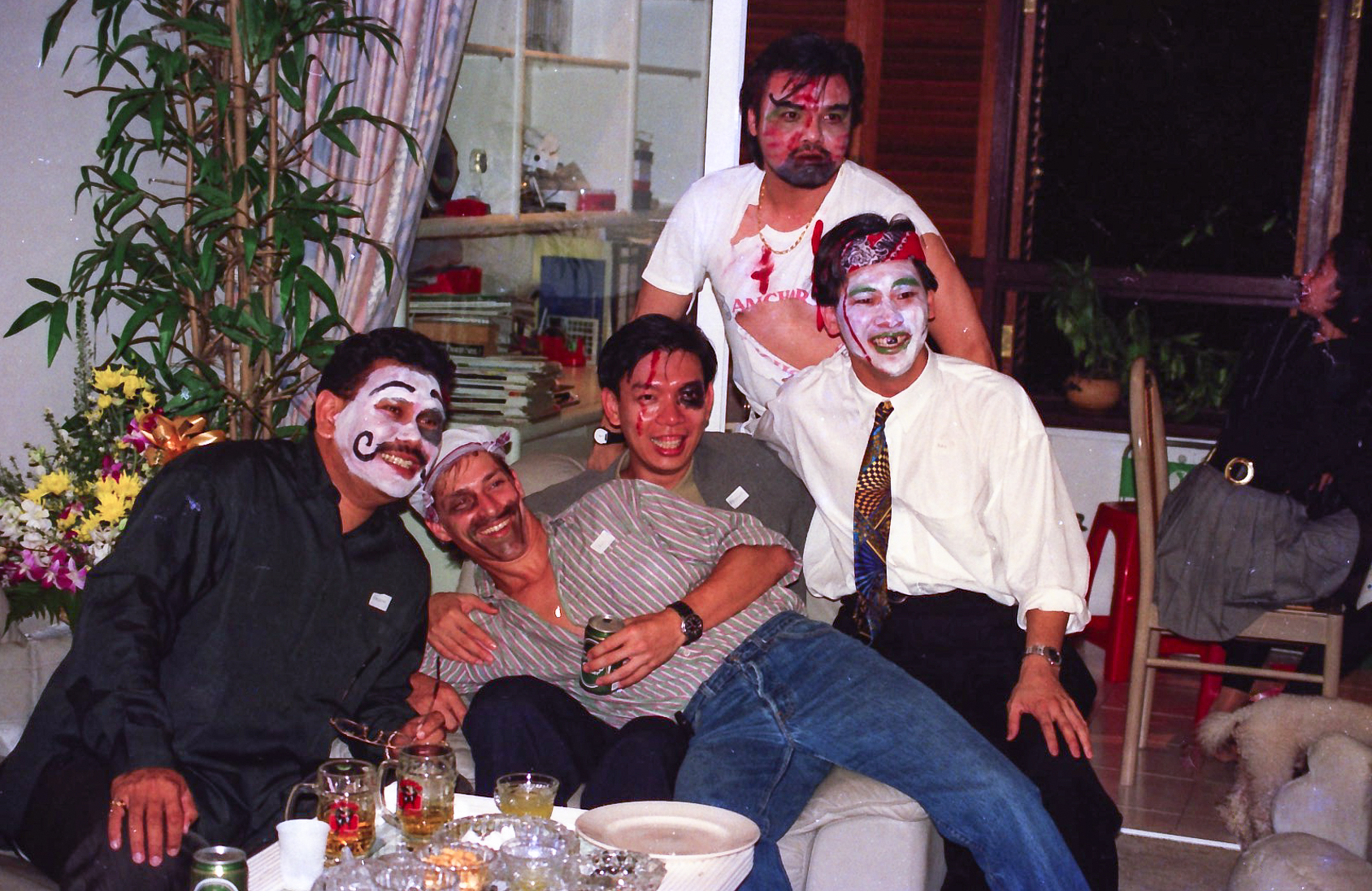 Hun fik fat i en stor kasse sminke, og så gik hun ellers i gang fra en ende af. Snart var alle gæster gjort meget uhyggelige – ihverfald i hovedet, og det satte faktisk god gang i stemningen.