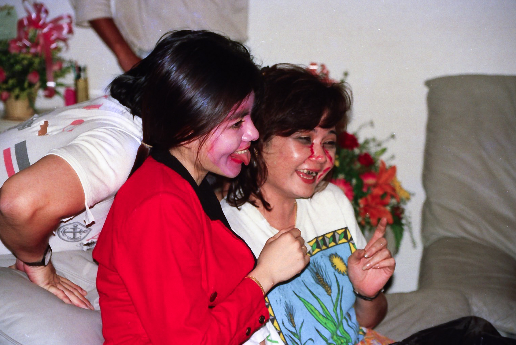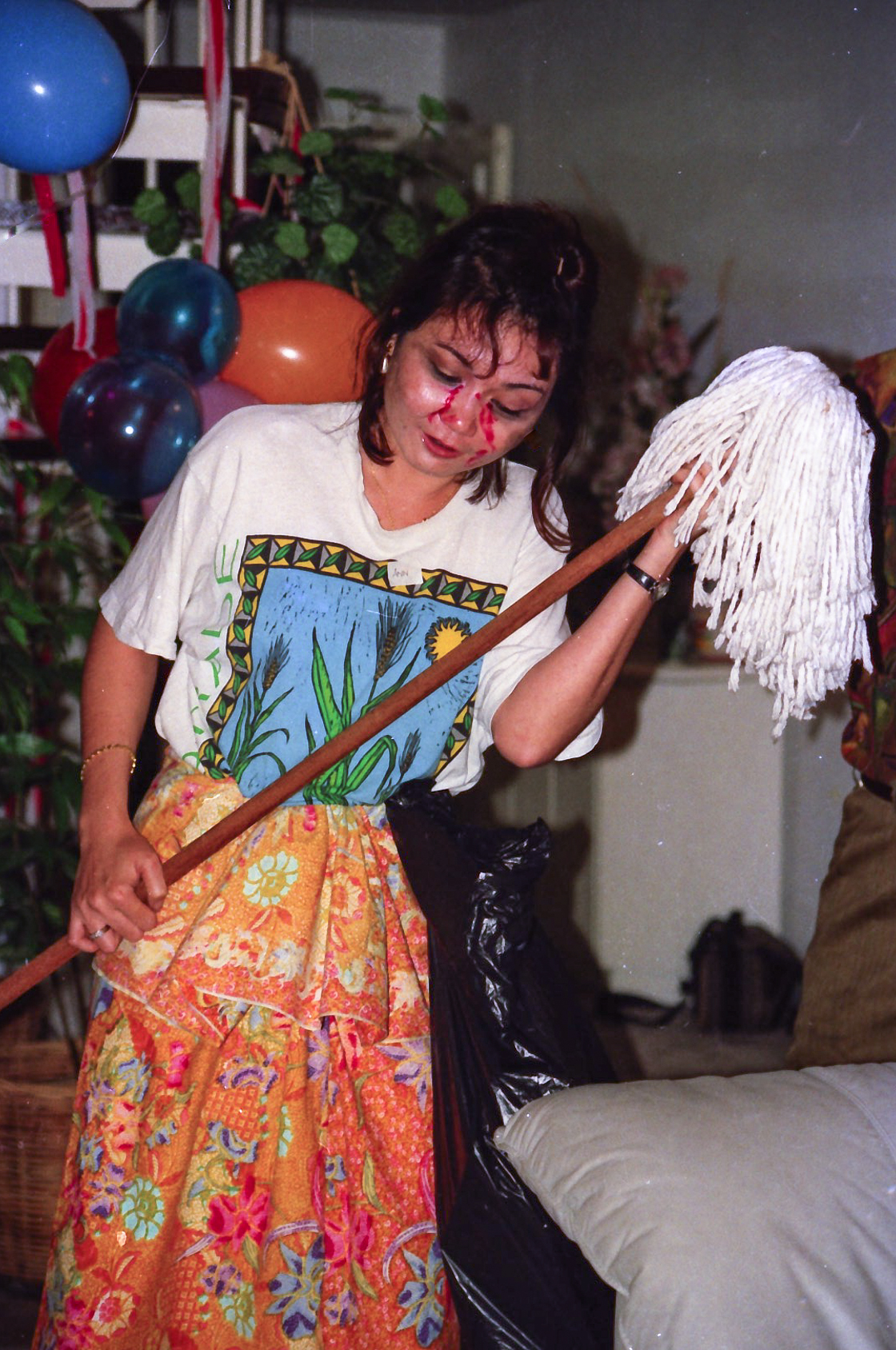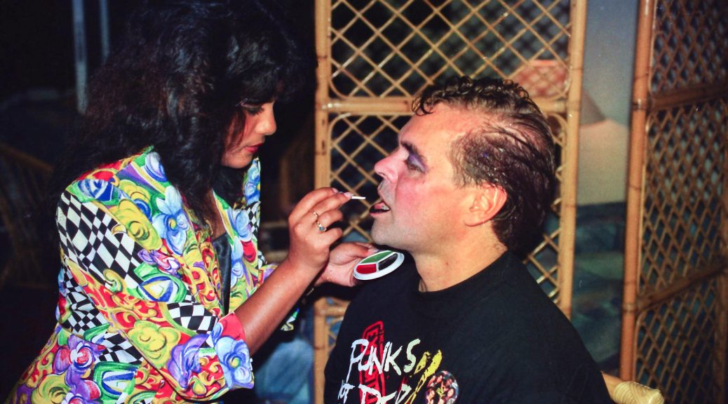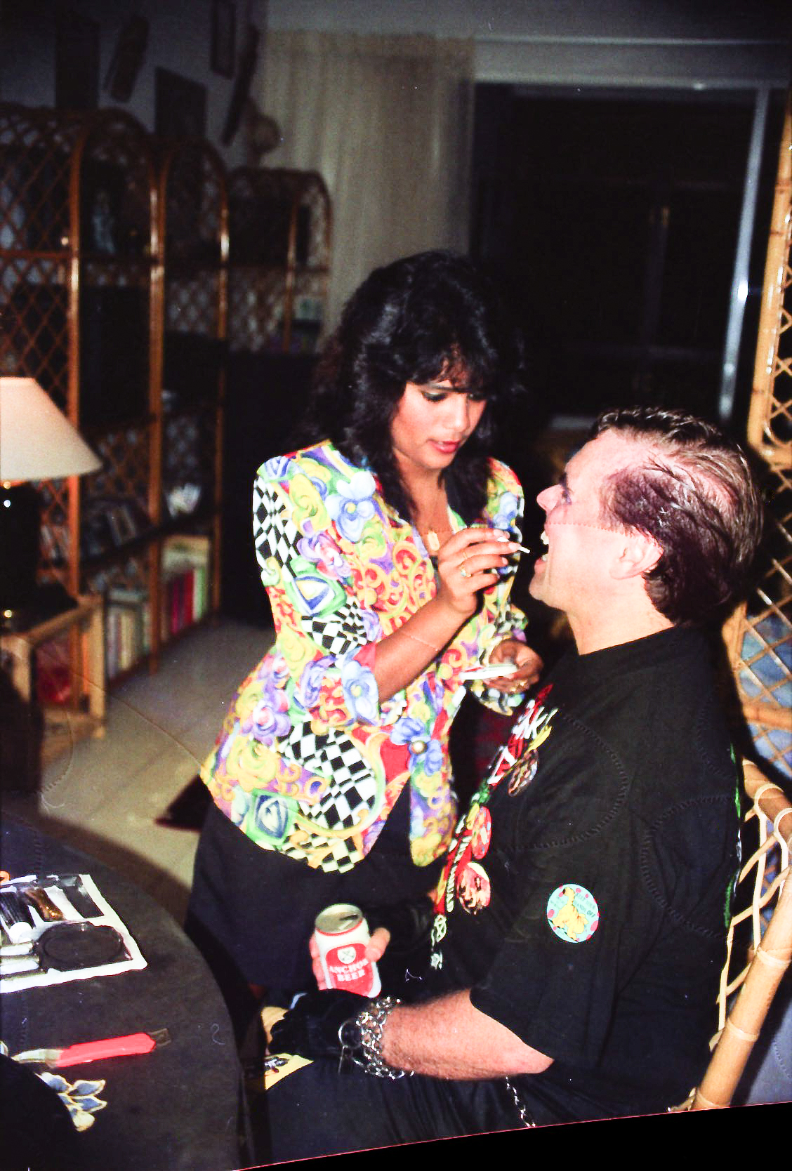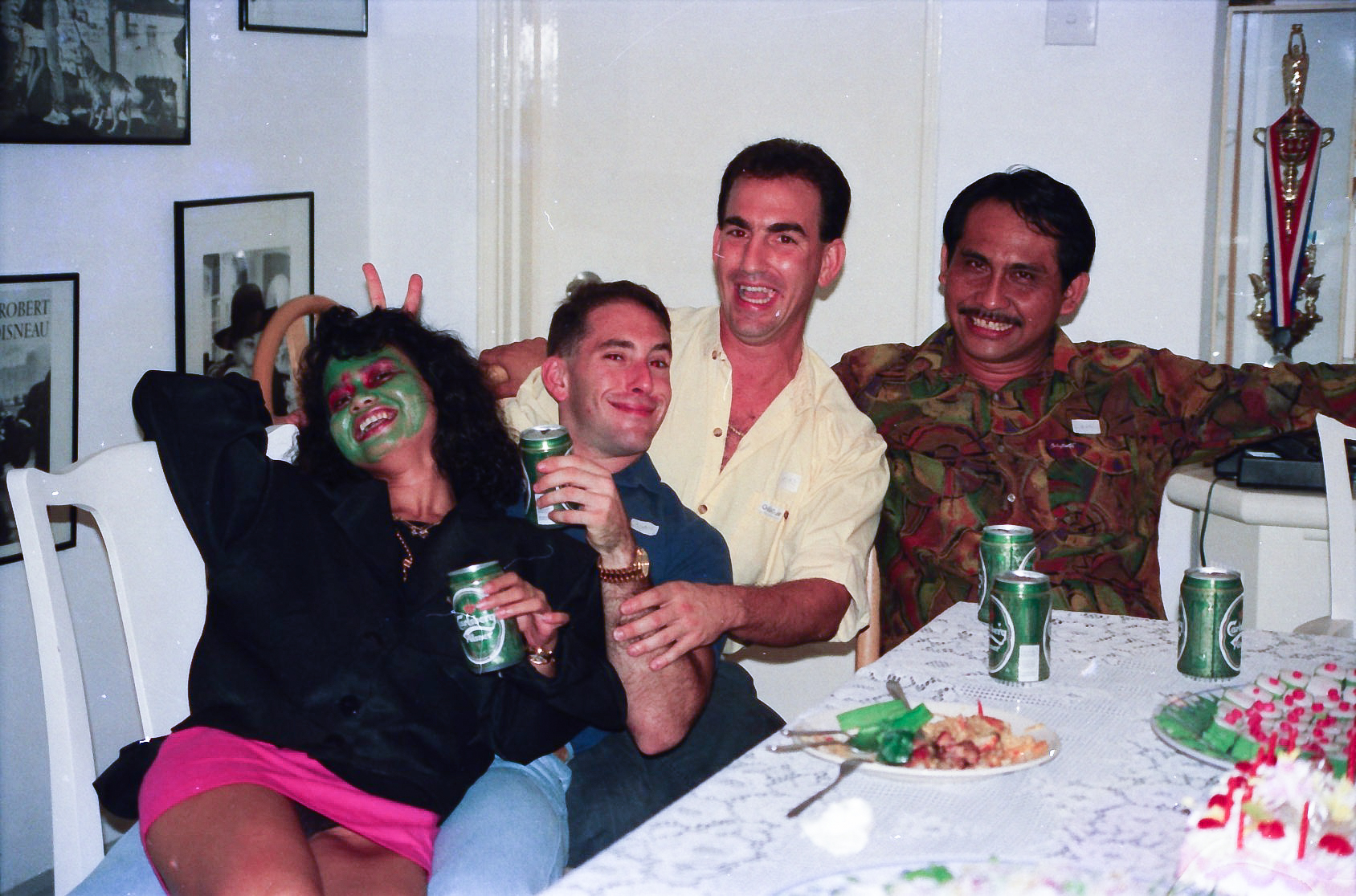 Hun fik fat i en stor kasse sminke, og så gik hun ellers i gang fra en ende af. Snart var alle gæster gjort meget uhyggelige – ihverfald i hovedet, og det satte faktisk god gang i stemningen.