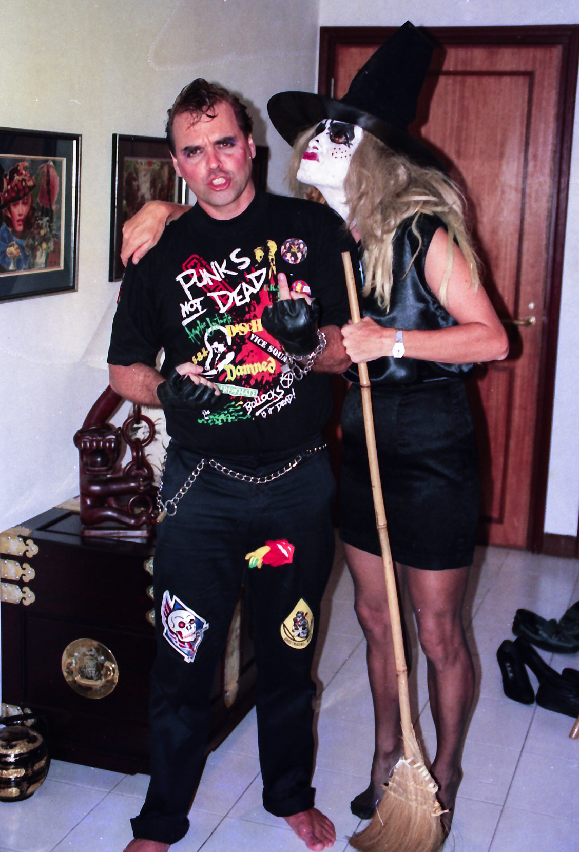Gitte skulle være heks (det lyder jo ikke som den store forvandling), mens jeg blev klædt ud som punker. Jeg fatter stadig ikke, hvad punk har med Halloween at gøre, men skidt pyt.