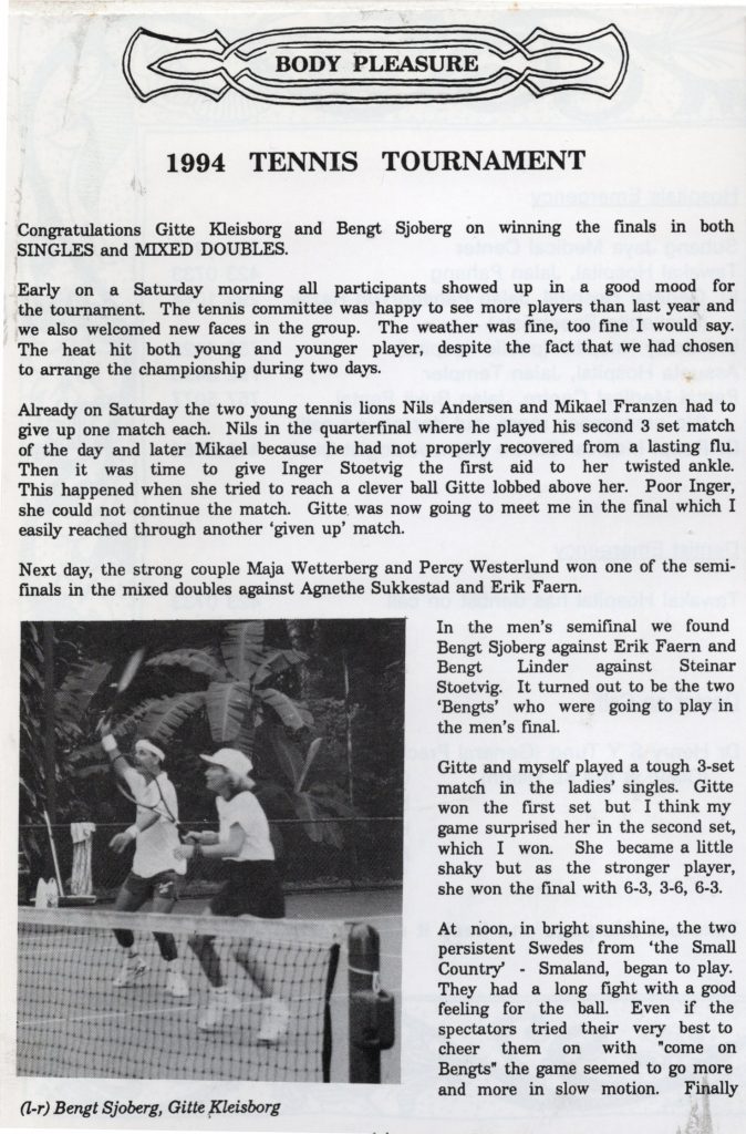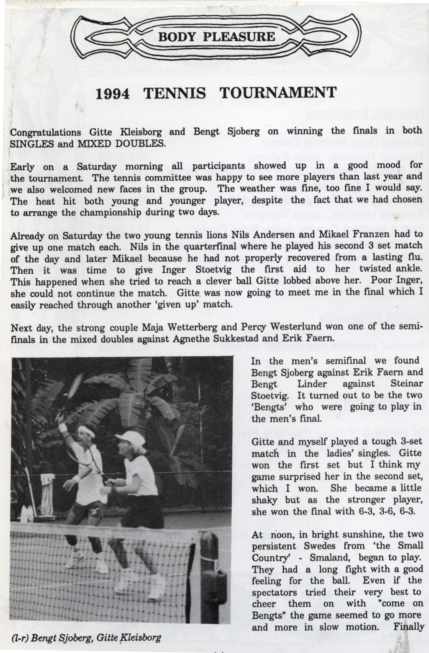 1994 Tennis Overskrift Gitte deltog ofte i diverse tennisturneringer. Her har hun vundet et eller andet. Tilbage til Årsoversigt Fotostation Fotobrowser