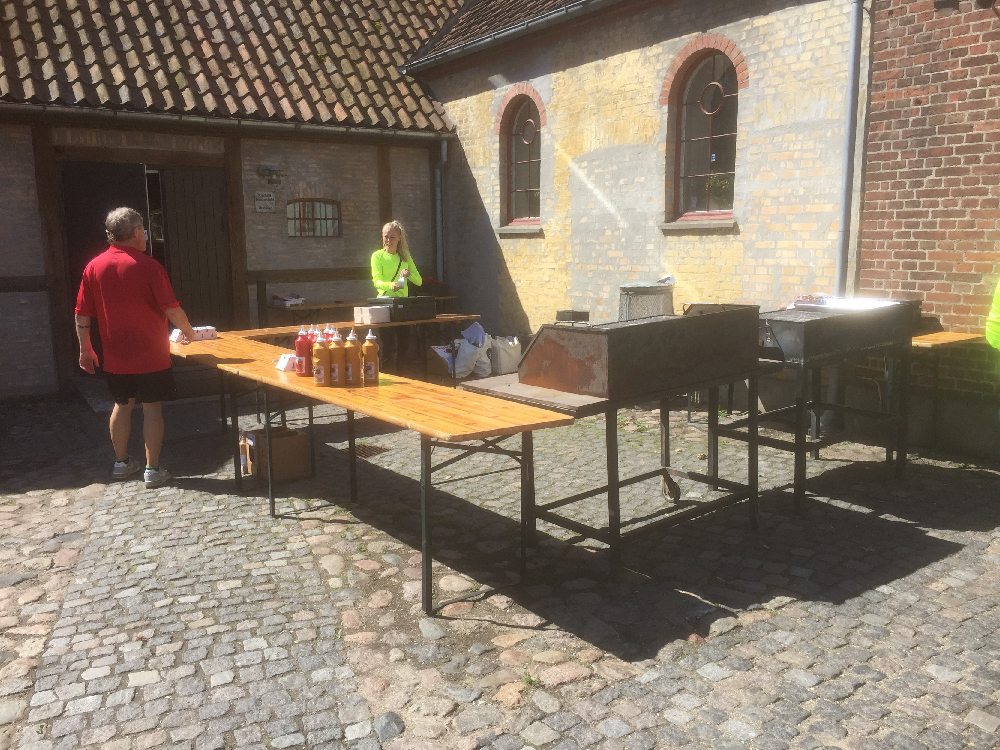Jeg var blevet spurgt, om jeg kunne være ansvarlig for grillen, da de manglede personale på gården. Jeg skulle stå for opstilling og optænding af de to store griller, og så ellers grille pølser sammen med 3 ansatte fra rådhuset. Det lød da meget sjovt, så det sagde jeg selvfølgelig ja til – og så fik jeg ovenikøbet løn for mine anstrengelser.
