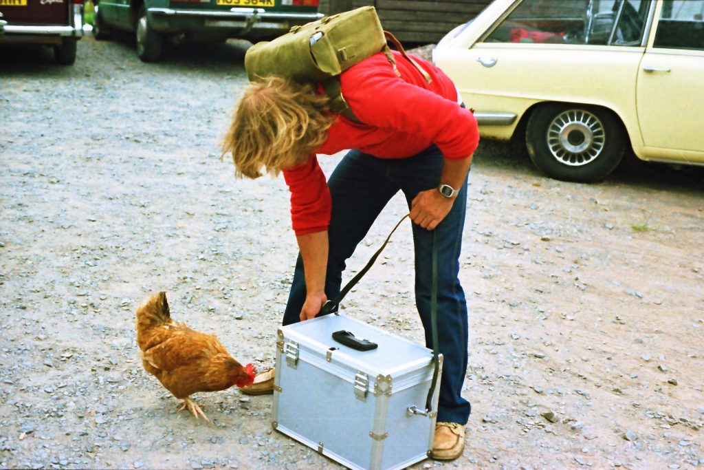 Kameraet ligger i den store kuffert og videobåndoptageren har jeg på ryggen.