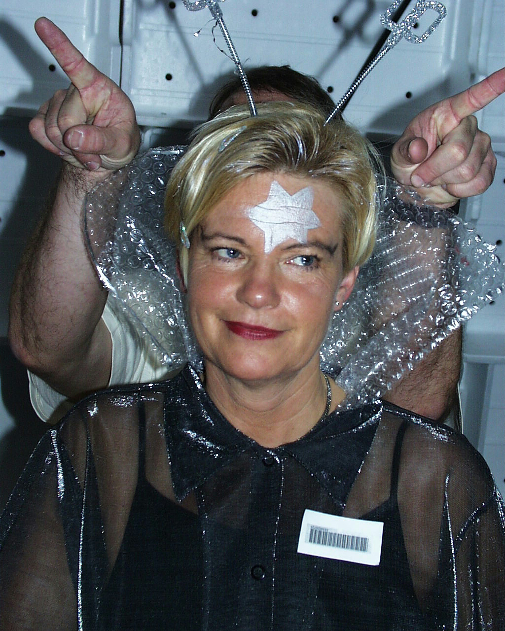 I starten var jeg klædt ud som en flot rummand med ildsprudende raketter osv, men det var godt nok for varmt efterhånden som aftenen skred frem.