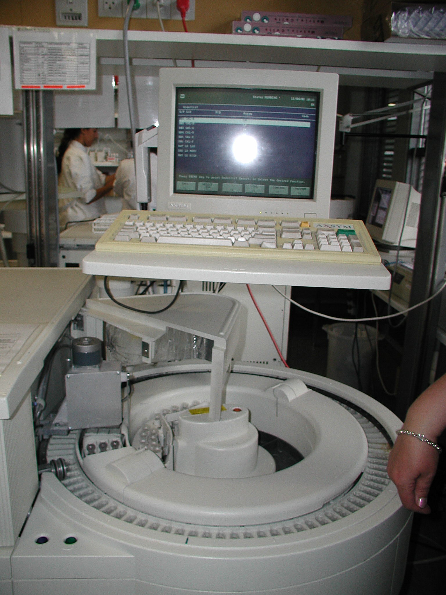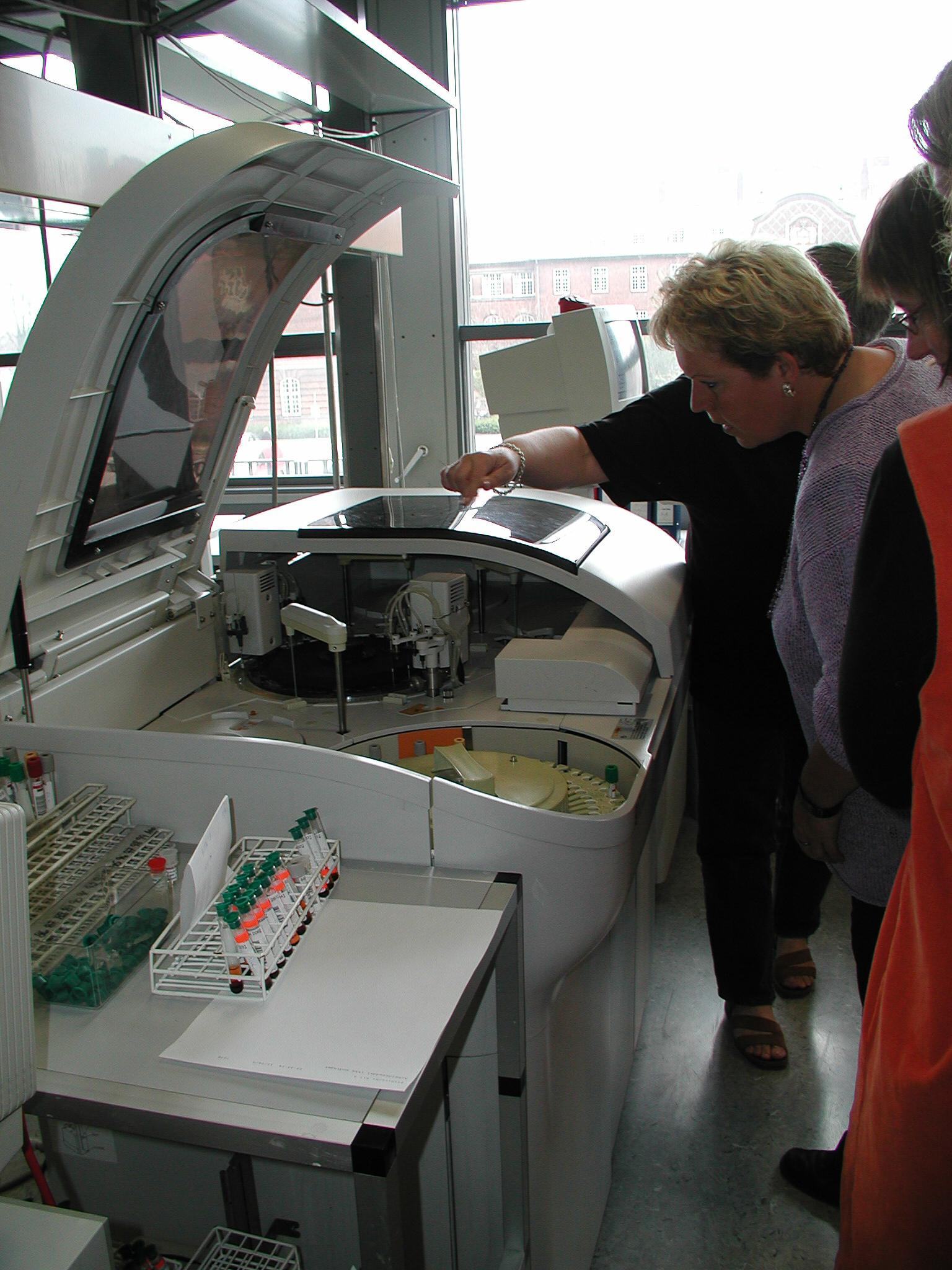Rigshospitalet var et af hospitalerne, og projektdeltagerne besøgte derfor deres laboratorie for at komme tæt på de maskiner, som vi sad og udviklede styresystemer til.