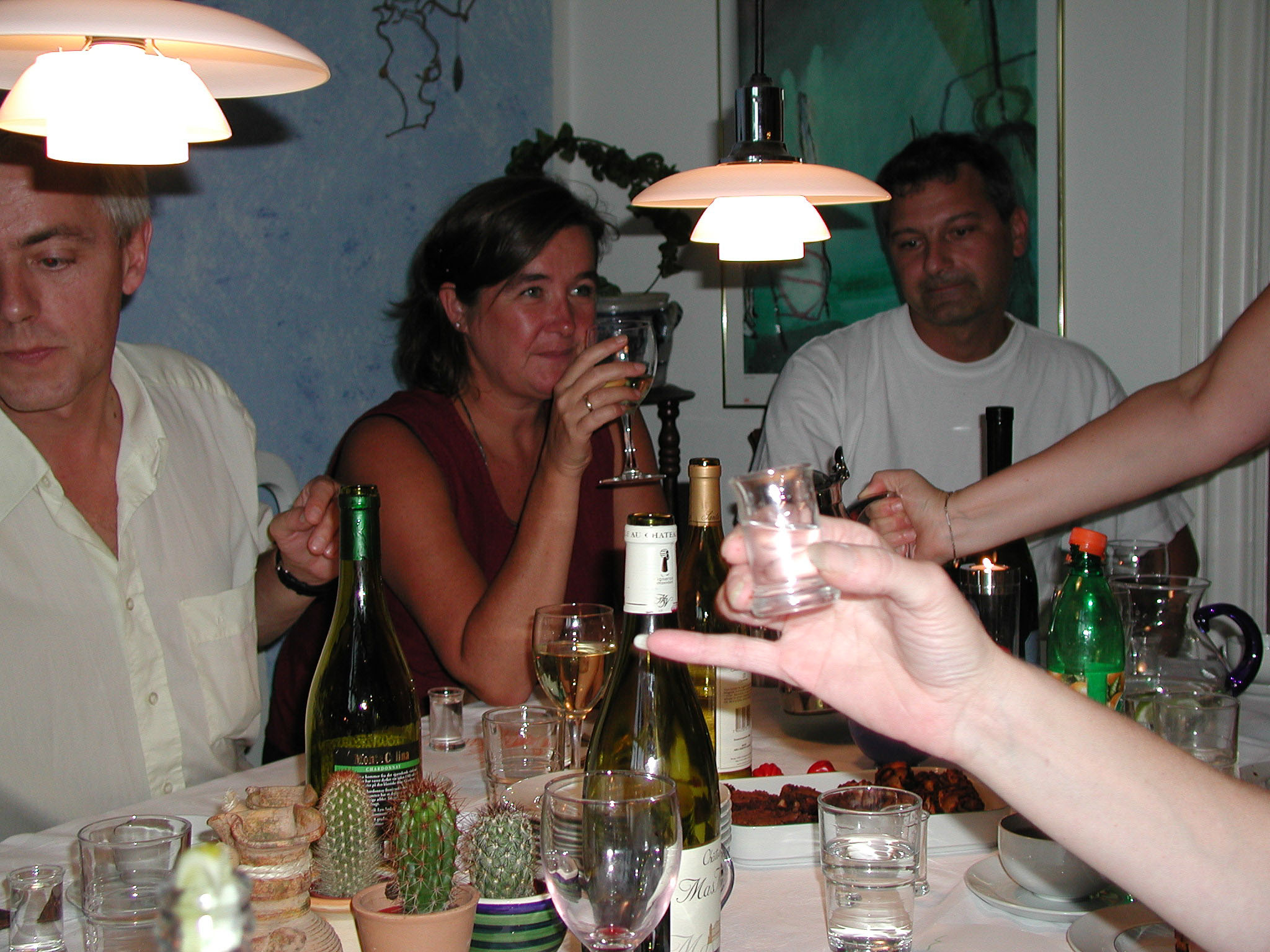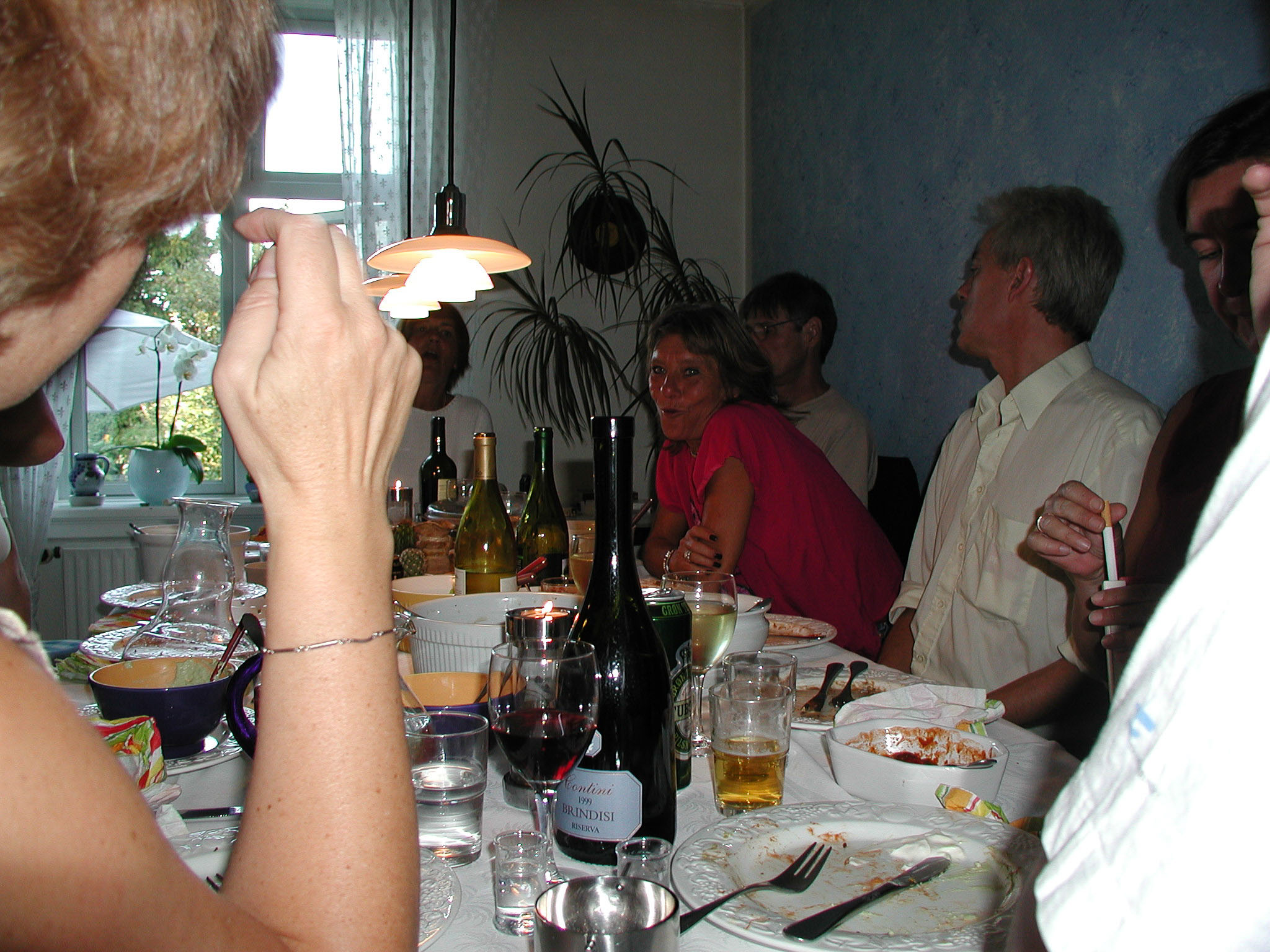 Efter kaffen gik vi i haven og spillede Vikingespil (i mørke!). Aftenen sluttede under valnøddetræet i lyset af levende lys og fakler.