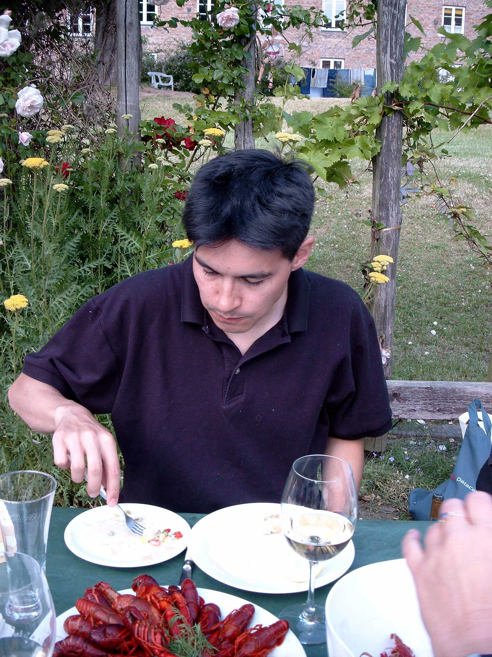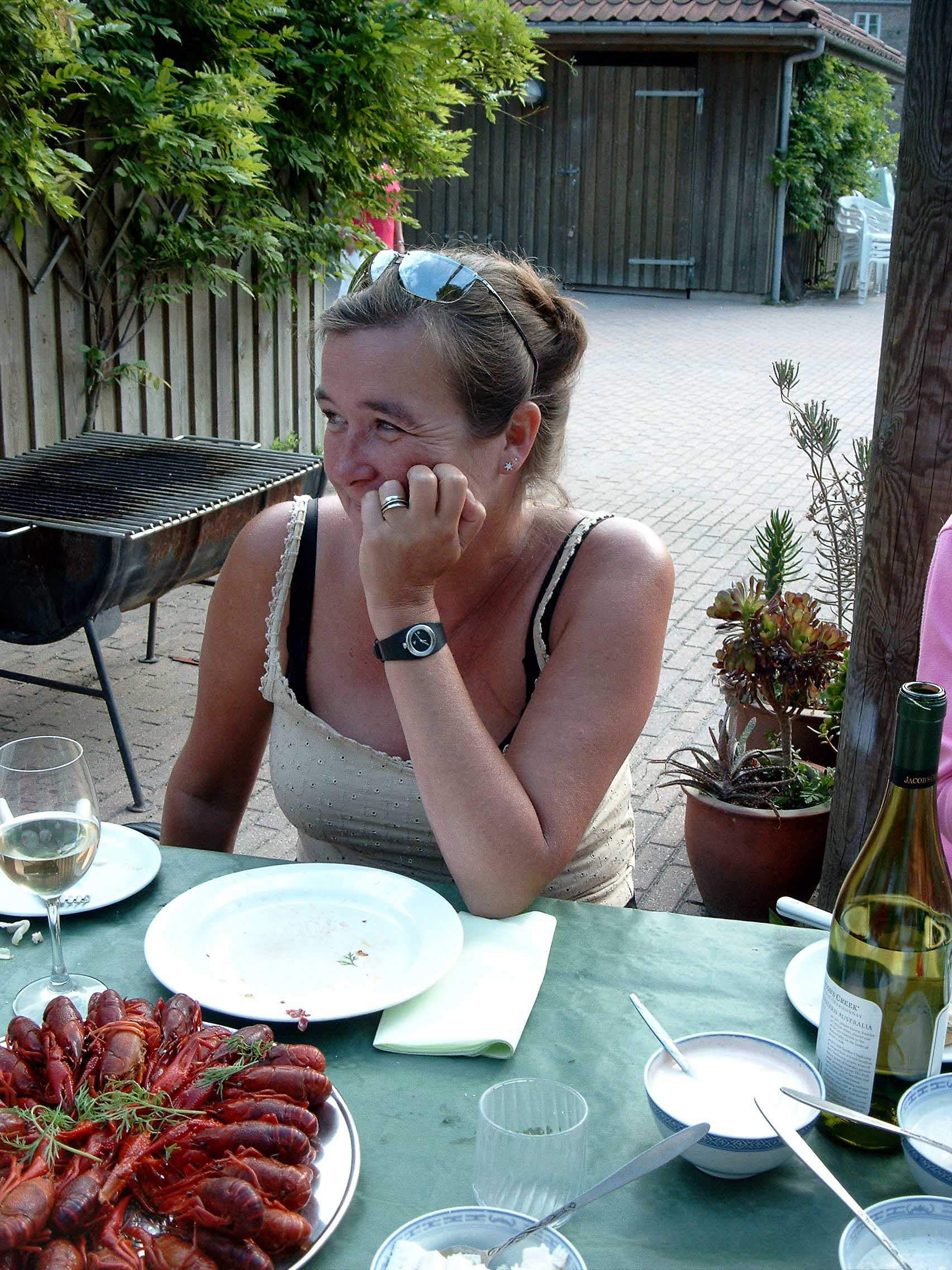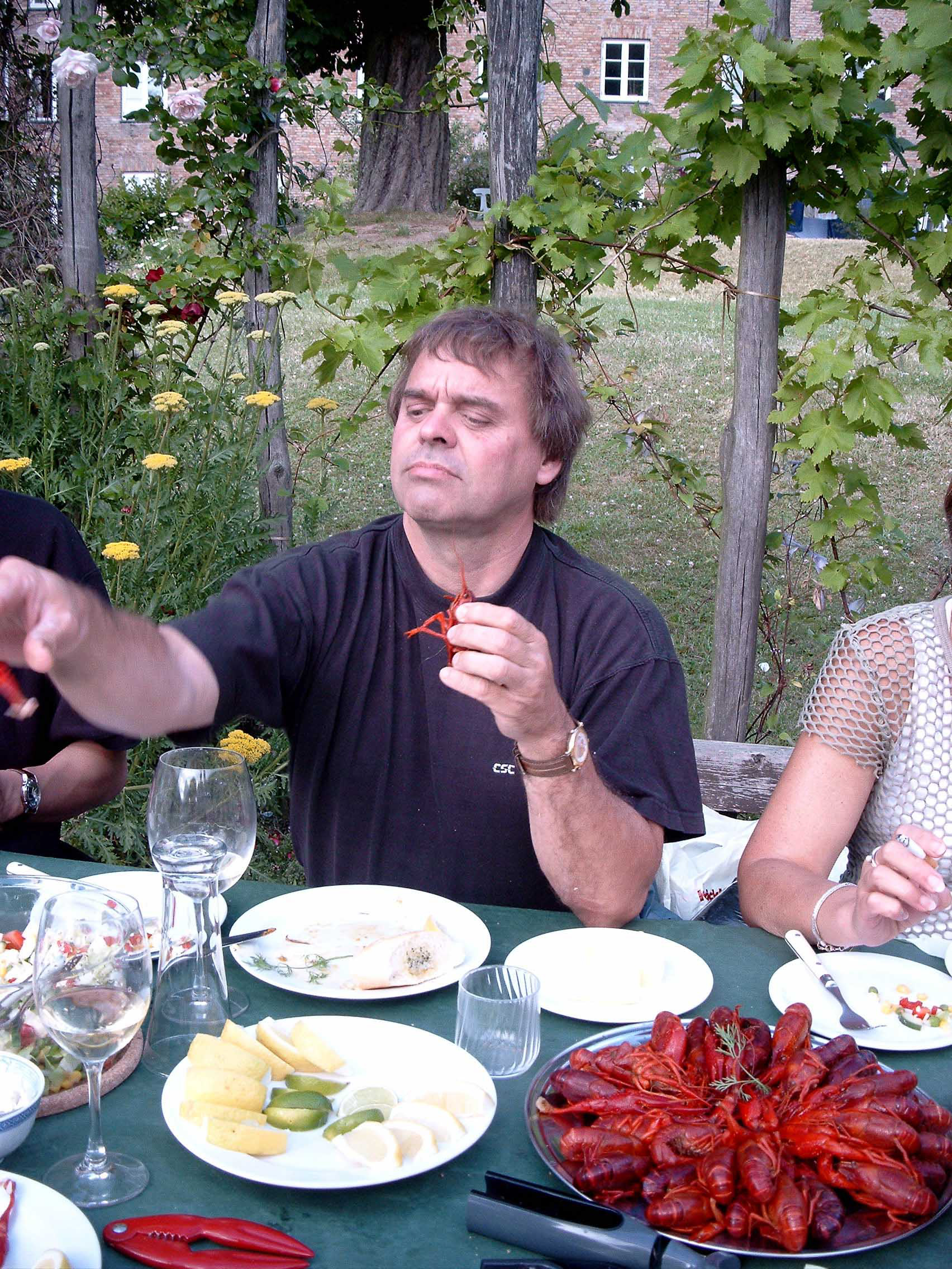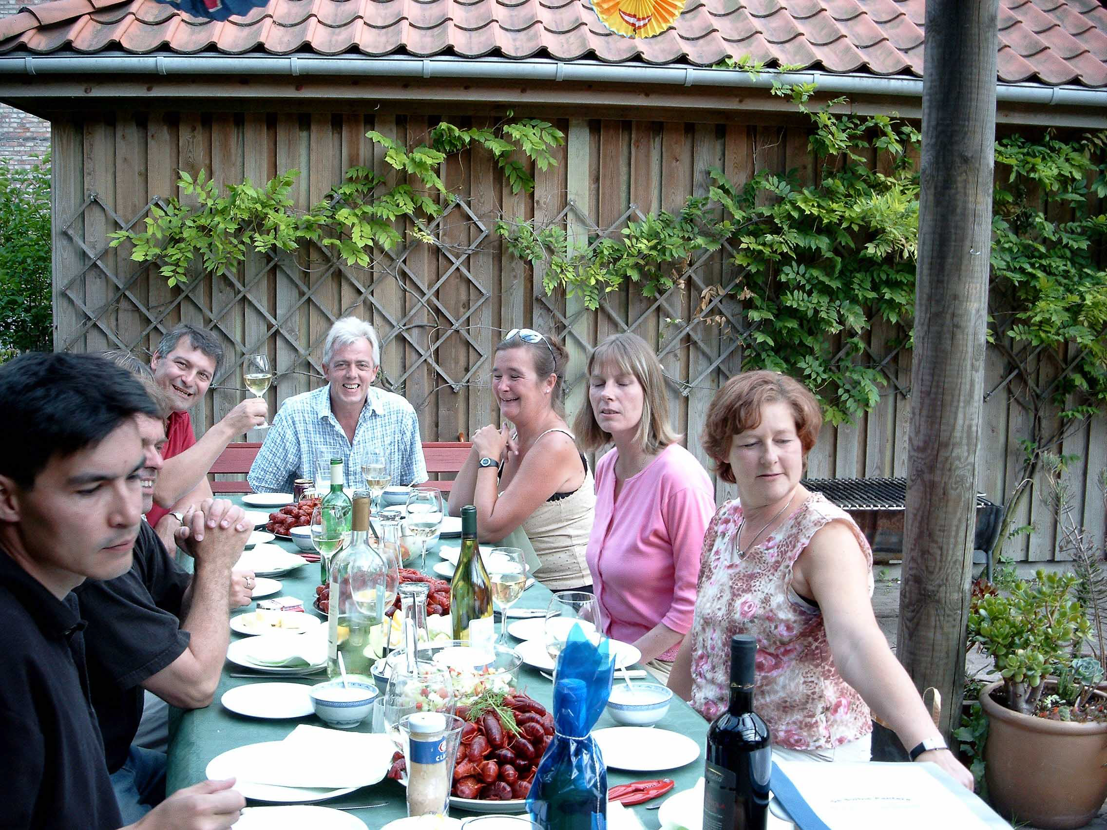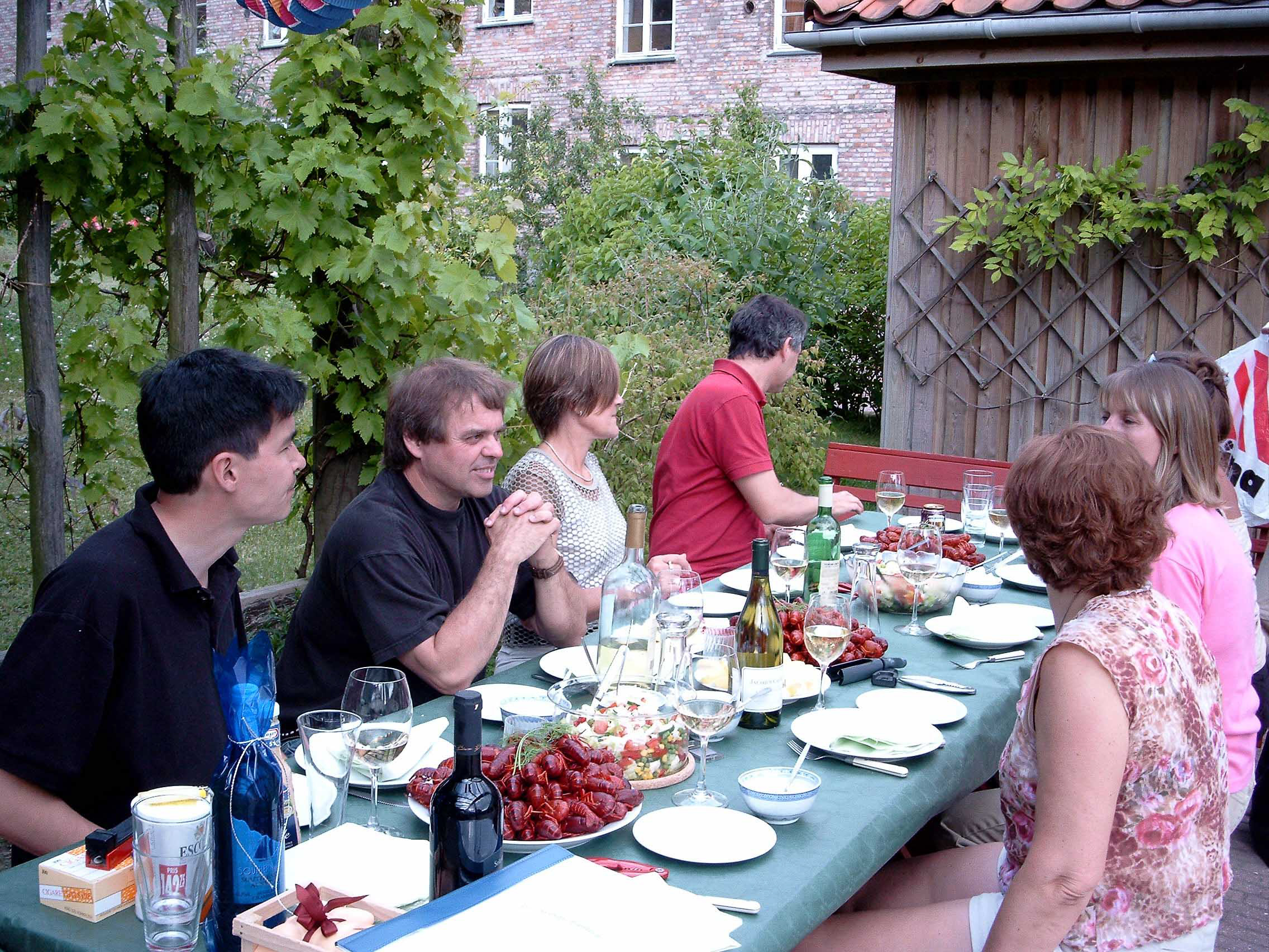 Efter de første startvanskeligheder med skaldyrene blev det en fornøjelig aften, alle var glade og da det blev mørkt gav papirlamperne lige det sidste til en god stemning.