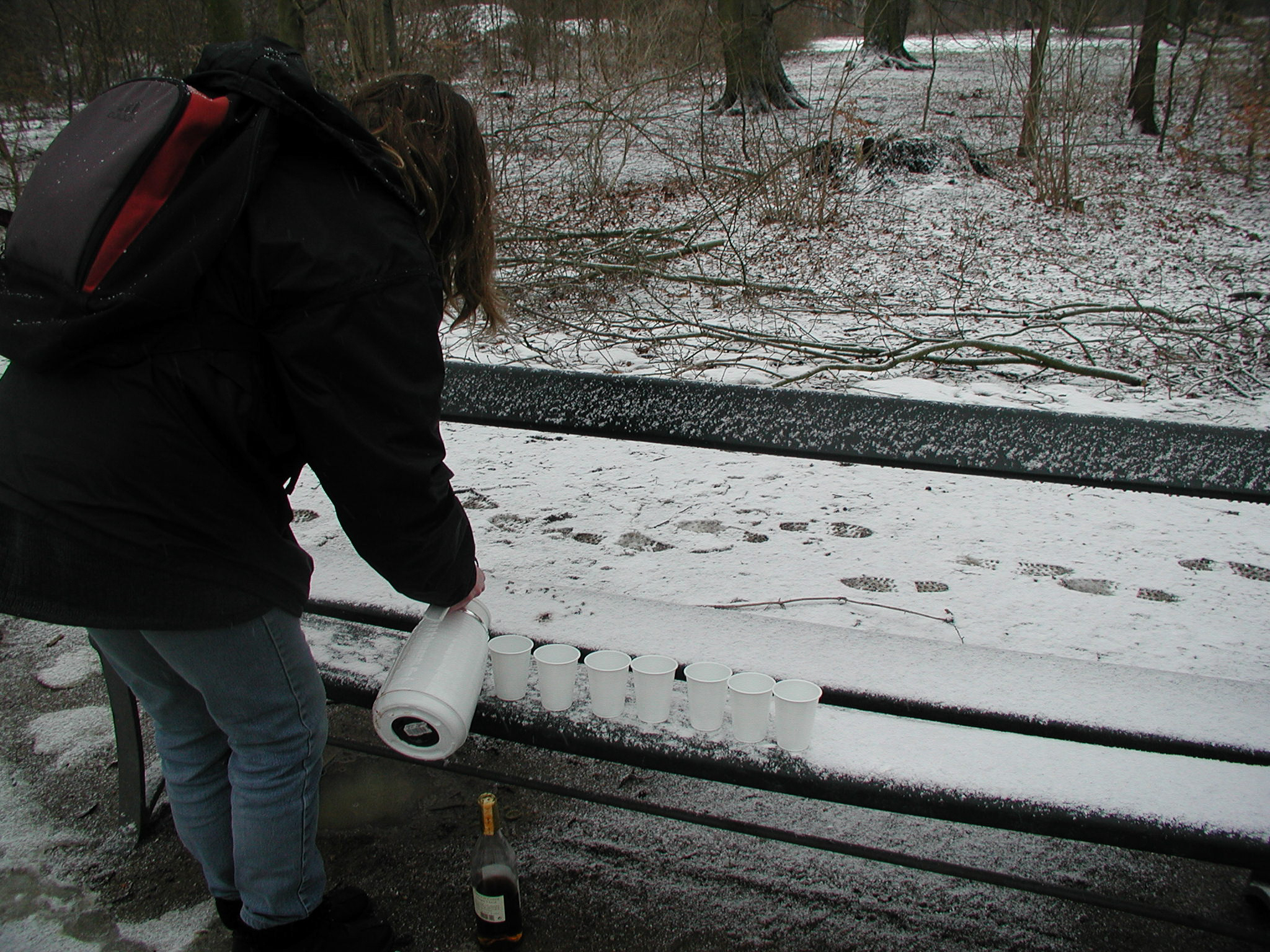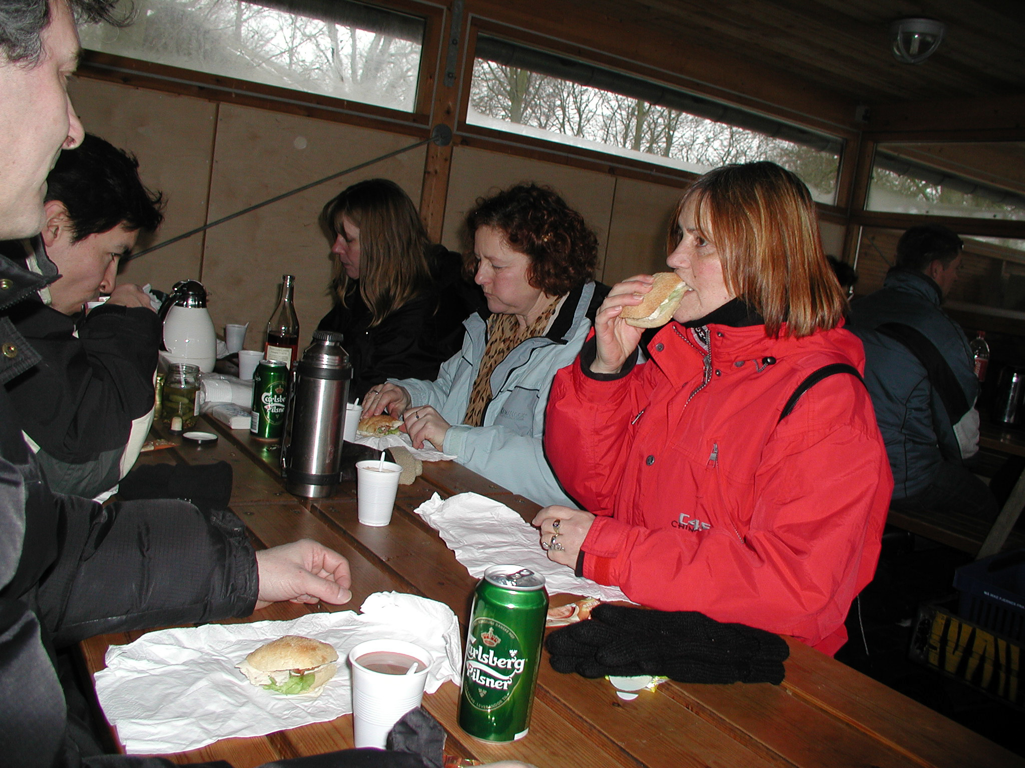 Der var smurt lækre sandwich og medbragt varm kakao til at varme os på.