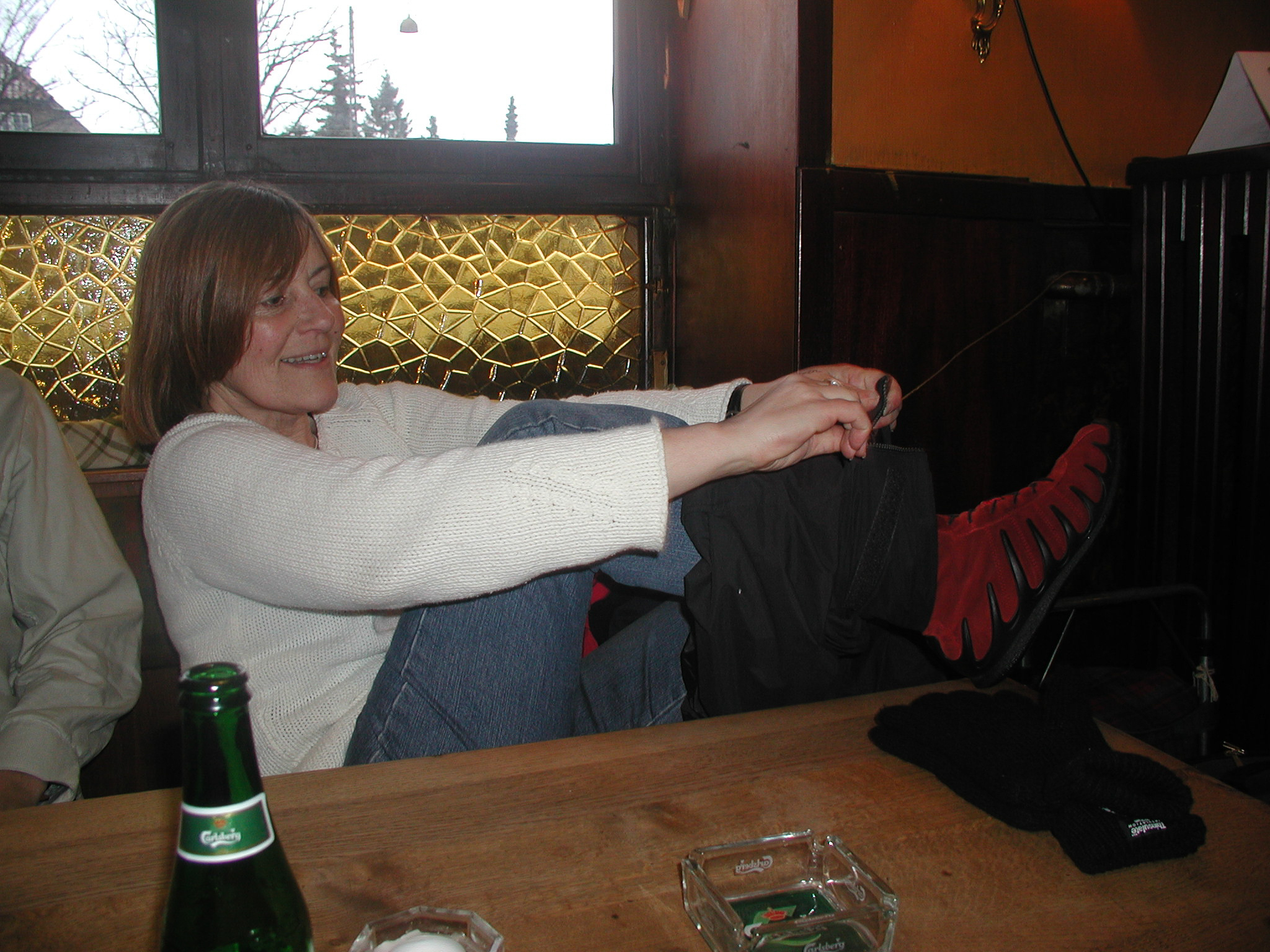 Det gik også glat, da vi alle havde nogenlunde let ved at spille åndsvage, så det endte med at vagten – MEGET TYDELIGT – ønskede os en god dag.