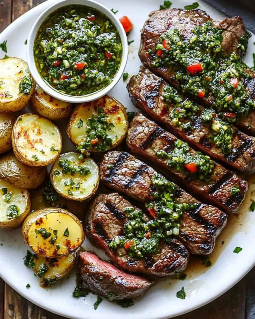 Chimichurri grillet bøf med sprøde bagte kartofler