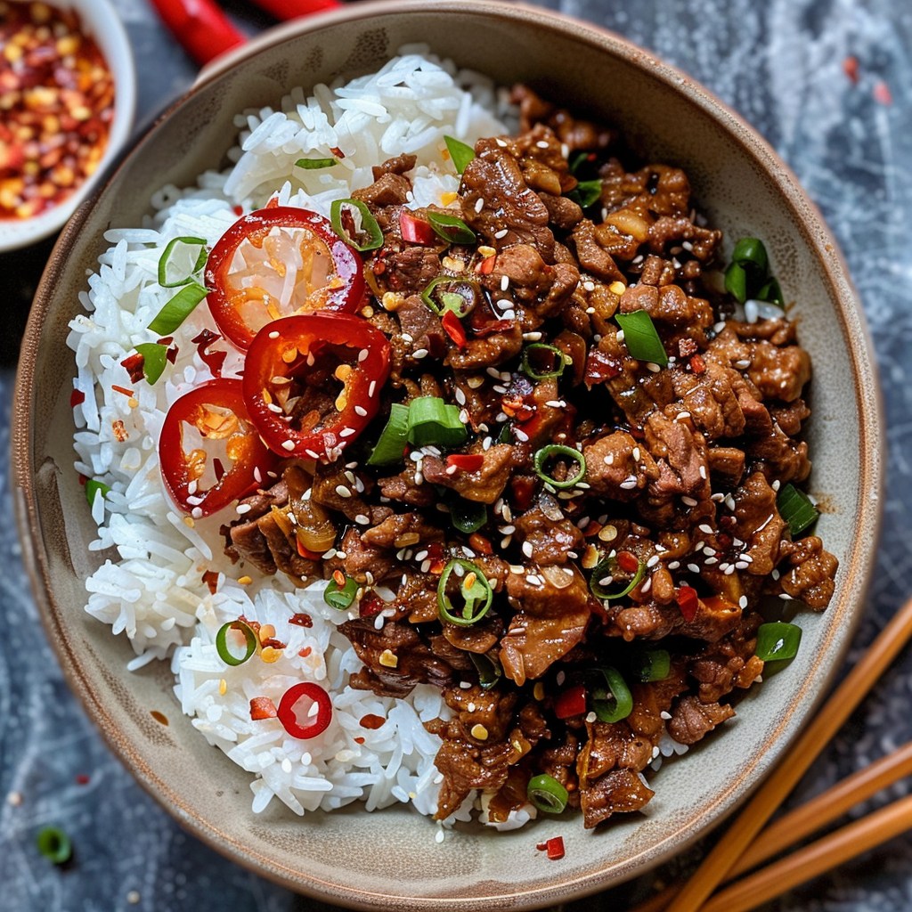 Spicy Mongolian Beef with Fried Rice