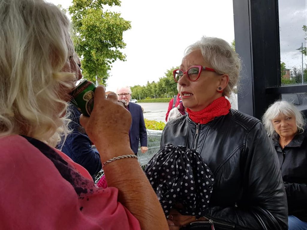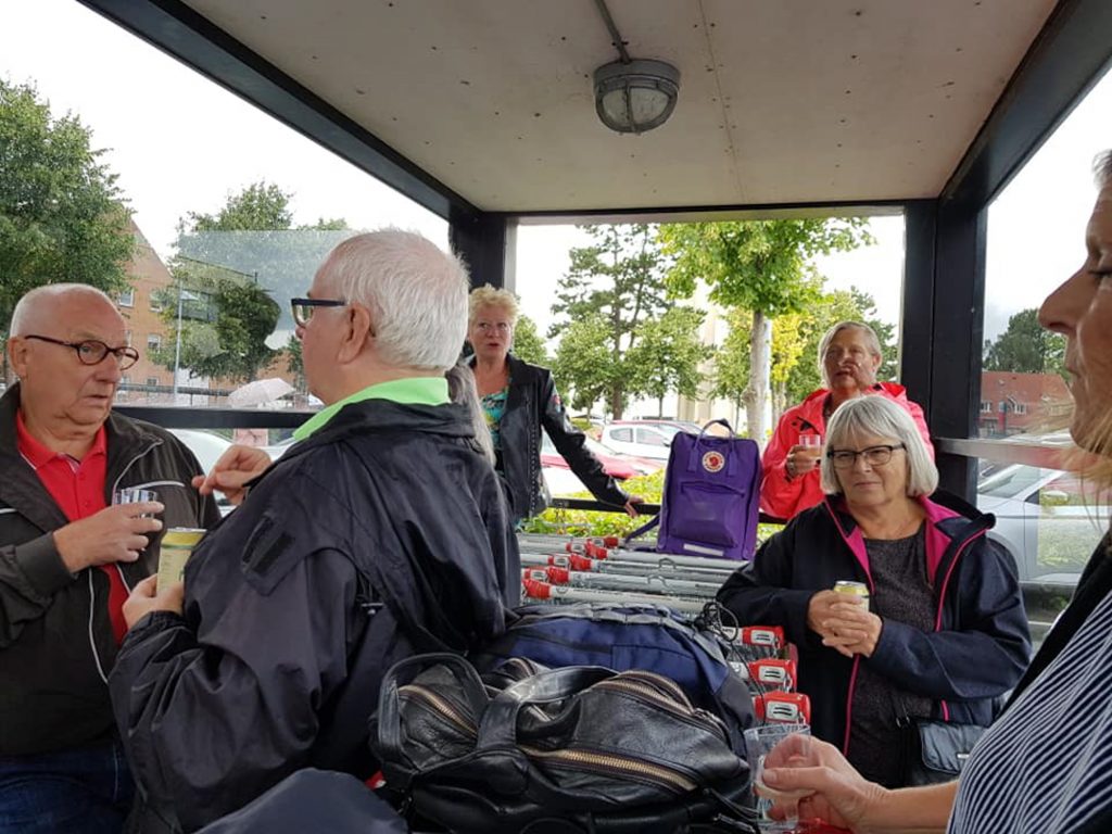 Vi mødtes på parkeringspladsen ved Rødovre Centrum, og vejret så ikke lovende ud. Det regnede – men vores medlemmer havde klædt sig på til vejret og medbragt paraplyer, så humøret var alligevel højt, mens vi ventede på, at bussen skulle ankomme.