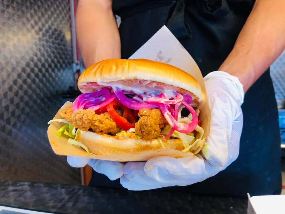 Brioche burgerbolle, med lækre sprøde Chicken strips, TMP mayo, hjemmelavet, , frisk rødløg, salat Jalapenos og syltet rødløg.