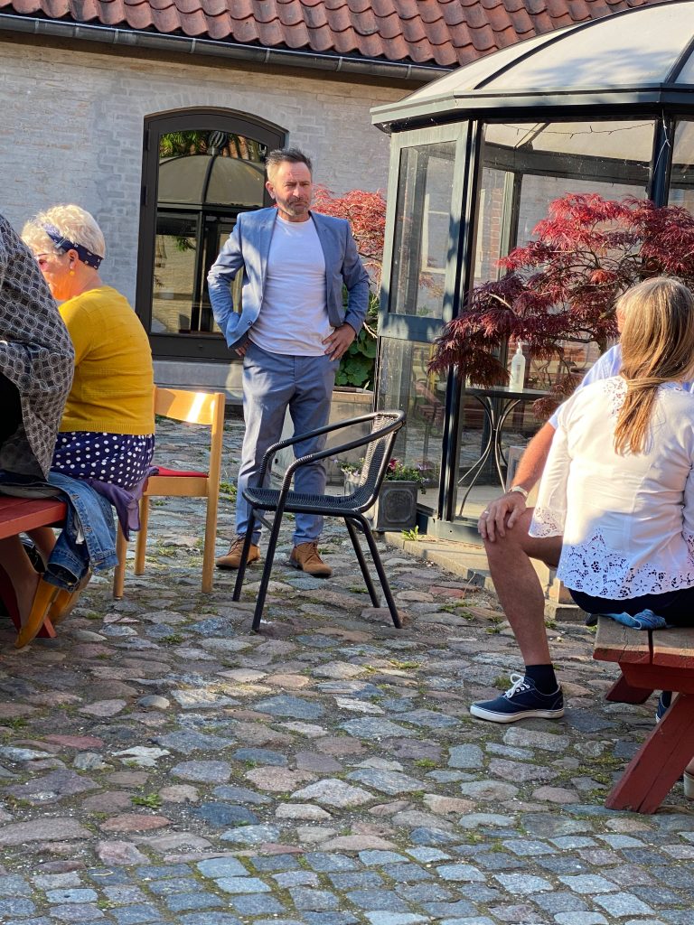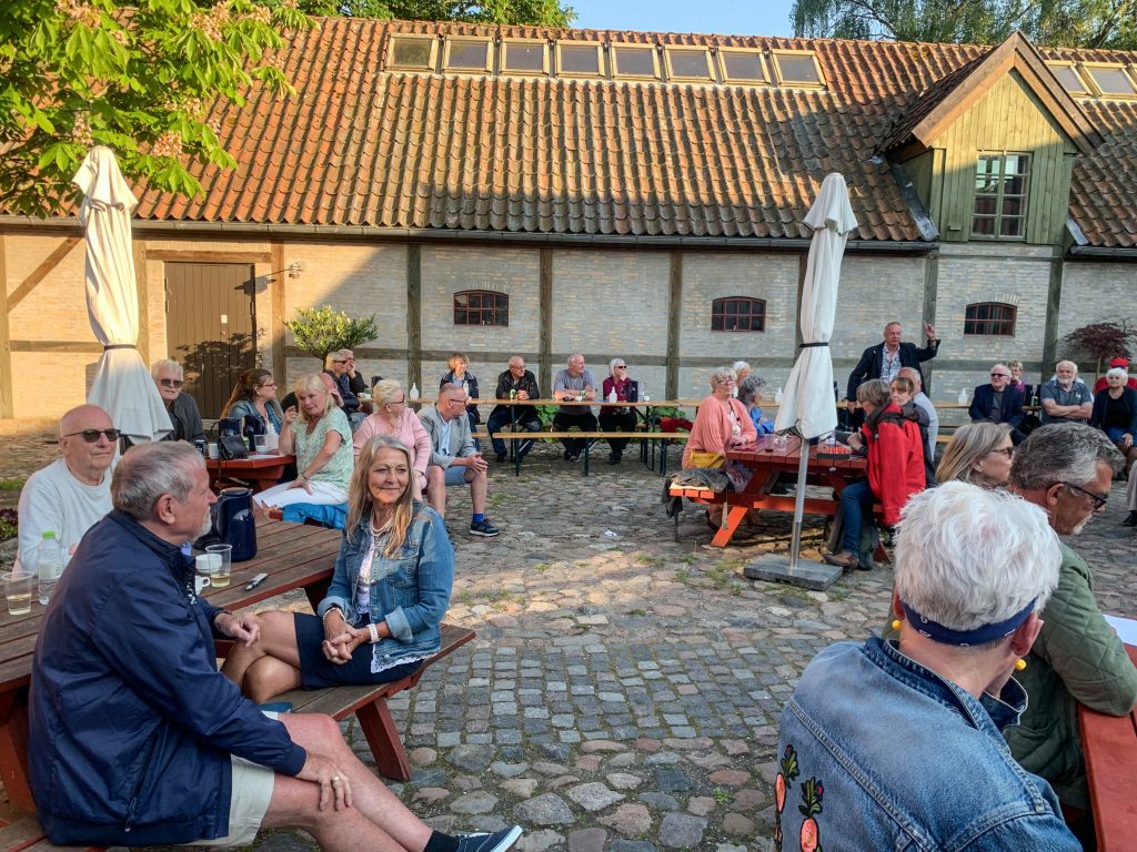 En hyggelig aften på gårdspladsen i lunt sommervejr afsluttes. Dejligt med mange gensyn efter en alt for lang og stille periode