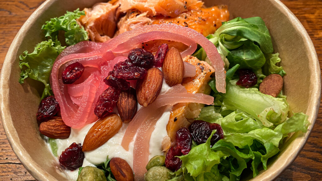 Denne gang kan du vælge en salatbowle med enten laks, tun eller kylling leveret af: